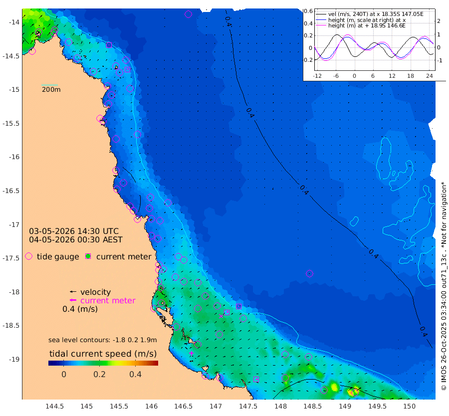1cm/s -57T +11cm/s rms + 4cm/s -61T. GBRLSL 354m 6cm/s 32T +15cm/s rms + 2cm/s -84T. GBRLSH 32m 9cm/s 58T +15cm/s rms + 5cm/s -155T. GBRPPS 72m 2cm/s 53T +17cm/s rms + 13cm/s 115T. GBRMYR 223m 10cm/s 104T +18cm/s rms + 0cm/s -9T. NRSYON 29m 49cm Osprey Reef - West 46cm Stanley Island 35cm Pipon Islands 45cm Cape Melville 46cm Munro Reef 49cm Leggatt Island 49cm Normanby River 43cm Carter Reef 47cm Lizard Island (QLD) 46cm East Petherbridge Island 46cm North Direction Island 43cm Cape Flattery 47cm Ribbon Reef No.9 54cm Low Wooded Island 44cm Cape Bedford 43cm Endeavour River North 46cm Cooktown 47cm Cruiser Passage 38cm East Hope Island 49cm Bailay Creek 41cm Low Islets 46cm Port Douglas 47cm Palm Cove 47cm Yorkeys Knob 46cm Michaelmas Cay 34cm Euston Reef 48cm Cairns 42cm Green Island 30cm Fitzroy Island 44cm Sudbury Cay 47cm High Island 33cm Russell Island 42cm Peart Reef 42cm Nathan Reef 49cm Mourilyan Harbour 47cm Cowley Beach 51cm North Barnard Island 53cm Eddy Reef 61cm Beaver Reef 50cm Unnamed Reef No. 1 39cm Flinders Reef 50cm Clump Point 51cm Dunk Island 50cm Barnett Patches 55cm Goold Island 59cm Cardwell 45cm Britomart Reef 48cm Pith Reef 51cm Dip Reef 54cm Lucinda (Offshore) 43cm John Brewer Reef 54cm Albino Rock 50cm Shrimp Reef 48cm Jaguar Reef 55cm Townsville 54cm Cape Ferguson 70cm Stanley Reef 72cm Wallaby Reef 71cm Kennedy Reef