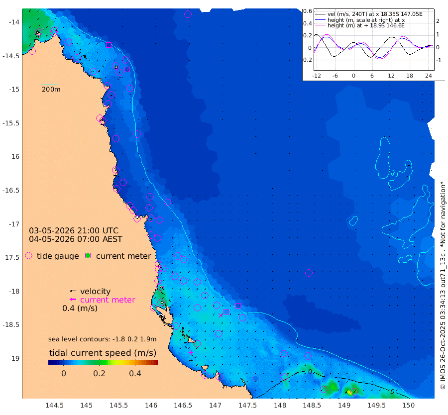 0cm/s 156T +11cm/s rms + 4cm/s -61T. GBRLSL 354m 1cm/s -124T +15cm/s rms + 2cm/s -84T. GBRLSH 32m 4cm/s -153T +15cm/s rms + 5cm/s -155T. GBRPPS 72m 2cm/s -150T +17cm/s rms + 13cm/s 115T. GBRMYR 223m 3cm/s -96T +18cm/s rms + 0cm/s -9T. NRSYON 29m 9cm Osprey Reef - West 15cm Stanley Island -4cm Pipon Islands 12cm Cape Melville 16cm Munro Reef 13cm Leggatt Island 13cm Normanby River 15cm Carter Reef 13cm Lizard Island (QLD) 16cm East Petherbridge Island 13cm North Direction Island 18cm Cape Flattery 14cm Ribbon Reef No.9 18cm Low Wooded Island 14cm Cape Bedford 2cm Endeavour River North 15cm Cooktown 14cm Cruiser Passage 22cm East Hope Island 9cm Bailay Creek 19cm Low Islets 14cm Port Douglas 15cm Palm Cove 14cm Yorkeys Knob 12cm Michaelmas Cay 15cm Euston Reef 15cm Cairns 15cm Green Island 20cm Fitzroy Island 16cm Sudbury Cay 14cm High Island 20cm Russell Island 18cm Peart Reef 16cm Nathan Reef 13cm Mourilyan Harbour 12cm Cowley Beach 10cm North Barnard Island 12cm Eddy Reef 21cm Beaver Reef 11cm Unnamed Reef No. 1 16cm Flinders Reef 13cm Clump Point 13cm Dunk Island 12cm Barnett Patches 12cm Goold Island 11cm Cardwell 15cm Britomart Reef 12cm Pith Reef 13cm Dip Reef 12cm Lucinda (Offshore) 19cm John Brewer Reef 12cm Albino Rock 12cm Shrimp Reef 6cm Jaguar Reef 12cm Townsville 11cm Cape Ferguson -2cm Stanley Reef -8cm Wallaby Reef -7cm Kennedy Reef