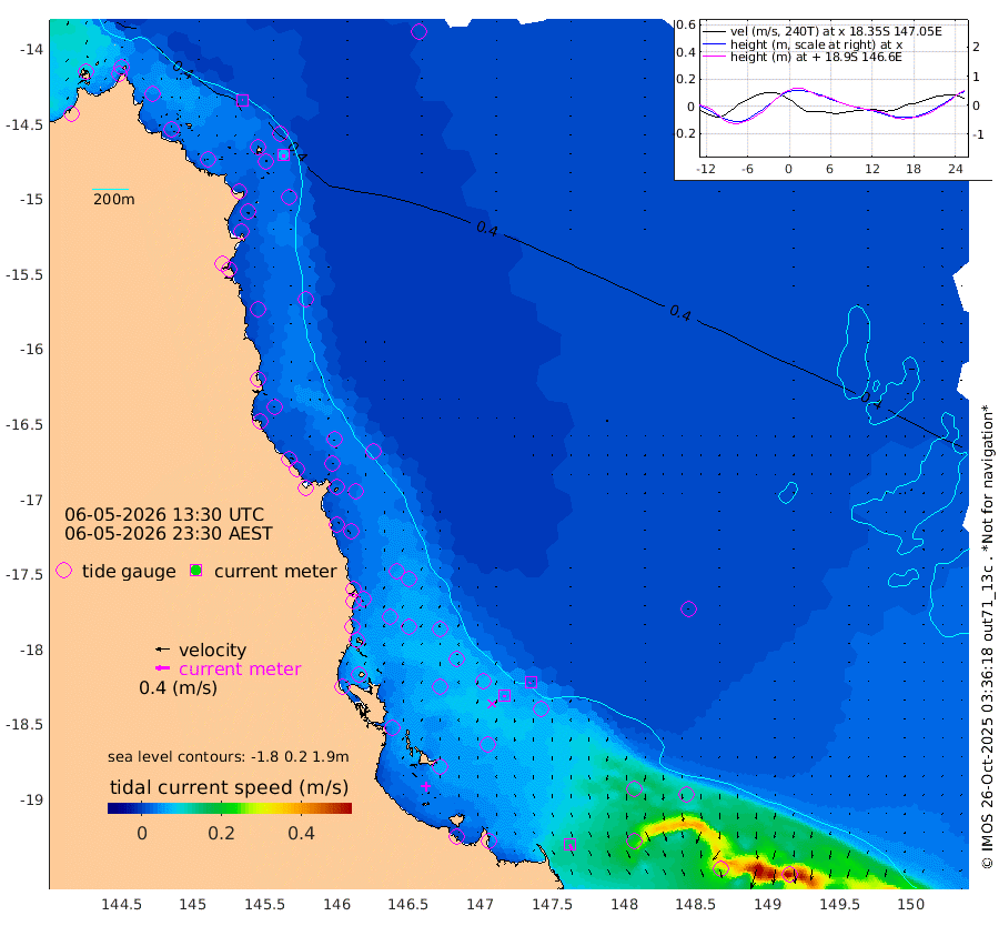 2cm/s -74T +11cm/s rms + 4cm/s -61T. GBRLSL 354m 7cm/s -178T +15cm/s rms + 2cm/s -84T. GBRLSH 32m 6cm/s -160T +15cm/s rms + 5cm/s -155T. GBRPPS 72m 3cm/s -131T +17cm/s rms + 13cm/s 115T. GBRMYR 223m 14cm/s 157T +18cm/s rms + 0cm/s -9T. NRSYON 29m 35cm Osprey Reef - West 34cm Stanley Island 21cm Pipon Islands 36cm Cape Melville 39cm Munro Reef 36cm Leggatt Island 34cm Normanby River 41cm Carter Reef 37cm Lizard Island (QLD) 34cm East Petherbridge Island 33cm North Direction Island 44cm Cape Flattery 40cm Ribbon Reef No.9 42cm Low Wooded Island 32cm Cape Bedford 19cm Endeavour River North 38cm Cooktown 40cm Cruiser Passage 46cm East Hope Island 33cm Bailay Creek 34cm Low Islets 38cm Port Douglas 39cm Palm Cove 34cm Yorkeys Knob 39cm Michaelmas Cay 44cm Euston Reef 40cm Cairns 39cm Green Island 48cm Fitzroy Island 43cm Sudbury Cay 36cm High Island 31cm Russell Island 33cm Peart Reef 33cm Nathan Reef 40cm Mourilyan Harbour 40cm Cowley Beach 39cm North Barnard Island 48cm Eddy Reef 52cm Beaver Reef 41cm Unnamed Reef No. 1 44cm Flinders Reef 42cm Clump Point 41cm Dunk Island 39cm Barnett Patches 42cm Goold Island 45cm Cardwell 40cm Britomart Reef 45cm Pith Reef 45cm Dip Reef 43cm Lucinda (Offshore) 38cm John Brewer Reef 49cm Albino Rock 49cm Shrimp Reef 48cm Jaguar Reef 45cm Townsville 44cm Cape Ferguson 39cm Stanley Reef 46cm Wallaby Reef 46cm Kennedy Reef