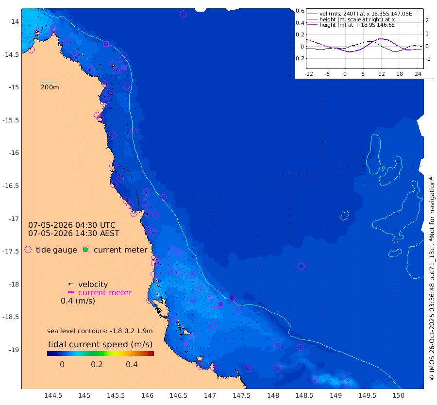 1cm/s 92T +11cm/s rms + 4cm/s -61T. GBRLSL 354m 3cm/s -11T +15cm/s rms + 2cm/s -84T. GBRLSH 32m 2cm/s -11T +15cm/s rms + 5cm/s -155T. GBRPPS 72m 0cm/s 138T +17cm/s rms + 13cm/s 115T. GBRMYR 223m 1cm/s -38T +18cm/s rms + 0cm/s -9T. NRSYON 29m -39cm Osprey Reef - West -44cm Stanley Island -12cm Pipon Islands -37cm Cape Melville -48cm Munro Reef -44cm Leggatt Island -45cm Normanby River -52cm Carter Reef -42cm Lizard Island (QLD) -43cm East Petherbridge Island -39cm North Direction Island -46cm Cape Flattery -50cm Ribbon Reef No.9 -56cm Low Wooded Island -38cm Cape Bedford -22cm Endeavour River North -44cm Cooktown -49cm Cruiser Passage -47cm East Hope Island -42cm Bailay Creek -41cm Low Islets -43cm Port Douglas -45cm Palm Cove -47cm Yorkeys Knob -43cm Michaelmas Cay -36cm Euston Reef -44cm Cairns -47cm Green Island -44cm Fitzroy Island -46cm Sudbury Cay -40cm High Island -42cm Russell Island -47cm Peart Reef -44cm Nathan Reef -43cm Mourilyan Harbour -41cm Cowley Beach -39cm North Barnard Island -43cm Eddy Reef -60cm Beaver Reef -44cm Unnamed Reef No. 1 -47cm Flinders Reef -44cm Clump Point -48cm Dunk Island -45cm Barnett Patches -46cm Goold Island -44cm Cardwell -47cm Britomart Reef -40cm Pith Reef -51cm Dip Reef -44cm Lucinda (Offshore) -48cm John Brewer Reef -45cm Albino Rock -43cm Shrimp Reef -37cm Jaguar Reef -44cm Townsville -43cm Cape Ferguson -41cm Stanley Reef -35cm Wallaby Reef -21cm Kennedy Reef