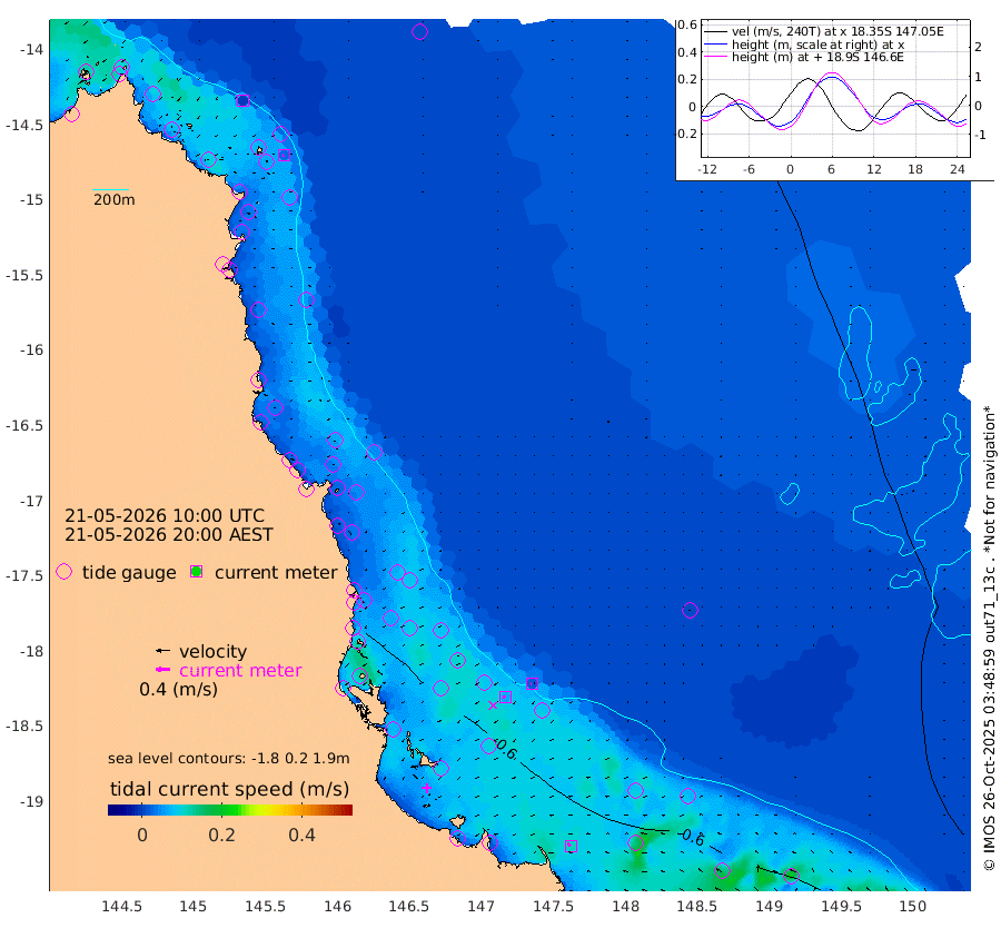 0cm/s -161T +11cm/s rms + 4cm/s -61T. GBRLSL 354m 3cm/s -112T +15cm/s rms + 2cm/s -84T. GBRLSH 32m 7cm/s -98T +15cm/s rms + 5cm/s -155T. GBRPPS 72m 2cm/s -92T +17cm/s rms + 13cm/s 115T. GBRMYR 223m 11cm/s -59T +18cm/s rms + 0cm/s -9T. NRSYON 29m -46cm Osprey Reef - West -56cm Stanley Island -65cm Pipon Islands -57cm Cape Melville -58cm Munro Reef -60cm Leggatt Island -61cm Normanby River -57cm Carter Reef -55cm Lizard Island (QLD) -50cm East Petherbridge Island -49cm North Direction Island -52cm Cape Flattery -47cm Ribbon Reef No.9 -53cm Low Wooded Island -44cm Cape Bedford -23cm Endeavour River North -53cm Cooktown -46cm Cruiser Passage -53cm East Hope Island -52cm Bailay Creek -53cm Low Islets -56cm Port Douglas -56cm Palm Cove -57cm Yorkeys Knob -50cm Michaelmas Cay -34cm Euston Reef -58cm Cairns -47cm Green Island -58cm Fitzroy Island -52cm Sudbury Cay -59cm High Island -42cm Russell Island -53cm Peart Reef -55cm Nathan Reef -57cm Mourilyan Harbour -54cm Cowley Beach -65cm North Barnard Island -54cm Eddy Reef -74cm Beaver Reef -53cm Unnamed Reef No. 1 -40cm Flinders Reef -60cm Clump Point -63cm Dunk Island -53cm Barnett Patches -65cm Goold Island -74cm Cardwell -61cm Britomart Reef -51cm Pith Reef -49cm Dip Reef -66cm Lucinda (Offshore) -64cm John Brewer Reef -61cm Albino Rock -55cm Shrimp Reef -47cm Jaguar Reef -69cm Townsville -65cm Cape Ferguson -68cm Stanley Reef -63cm Wallaby Reef -64cm Kennedy Reef