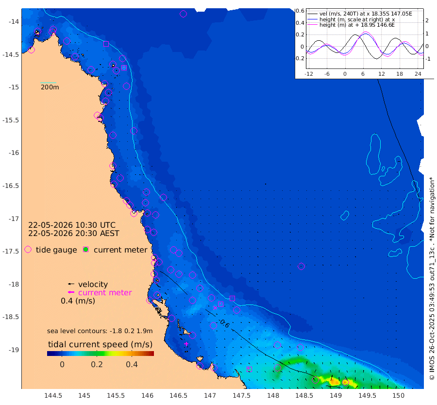 1cm/s -102T +11cm/s rms + 4cm/s -61T. GBRLSL 354m 5cm/s -10T +15cm/s rms + 2cm/s -84T. GBRLSH 32m 4cm/s -37T +15cm/s rms + 5cm/s -155T. GBRPPS 72m 2cm/s -6T +17cm/s rms + 13cm/s 115T. GBRMYR 223m 11cm/s -38T +18cm/s rms + 0cm/s -9T. NRSYON 29m -47cm Osprey Reef - West -53cm Stanley Island -64cm Pipon Islands -54cm Cape Melville -55cm Munro Reef -57cm Leggatt Island -58cm Normanby River -54cm Carter Reef -54cm Lizard Island (QLD) -48cm East Petherbridge Island -48cm North Direction Island -50cm Cape Flattery -47cm Ribbon Reef No.9 -53cm Low Wooded Island -44cm Cape Bedford -25cm Endeavour River North -53cm Cooktown -47cm Cruiser Passage -53cm East Hope Island -49cm Bailay Creek -53cm Low Islets -56cm Port Douglas -57cm Palm Cove -59cm Yorkeys Knob -49cm Michaelmas Cay -37cm Euston Reef -58cm Cairns -50cm Green Island -58cm Fitzroy Island -52cm Sudbury Cay -60cm High Island -45cm Russell Island -54cm Peart Reef -57cm Nathan Reef -57cm Mourilyan Harbour -55cm Cowley Beach -60cm North Barnard Island -54cm Eddy Reef -73cm Beaver Reef -55cm Unnamed Reef No. 1 -42cm Flinders Reef -60cm Clump Point -62cm Dunk Island -54cm Barnett Patches -65cm Goold Island -70cm Cardwell -63cm Britomart Reef -53cm Pith Reef -51cm Dip Reef -66cm Lucinda (Offshore) -60cm John Brewer Reef -61cm Albino Rock -54cm Shrimp Reef -49cm Jaguar Reef -69cm Townsville -66cm Cape Ferguson -62cm Stanley Reef -55cm Wallaby Reef -61cm Kennedy Reef