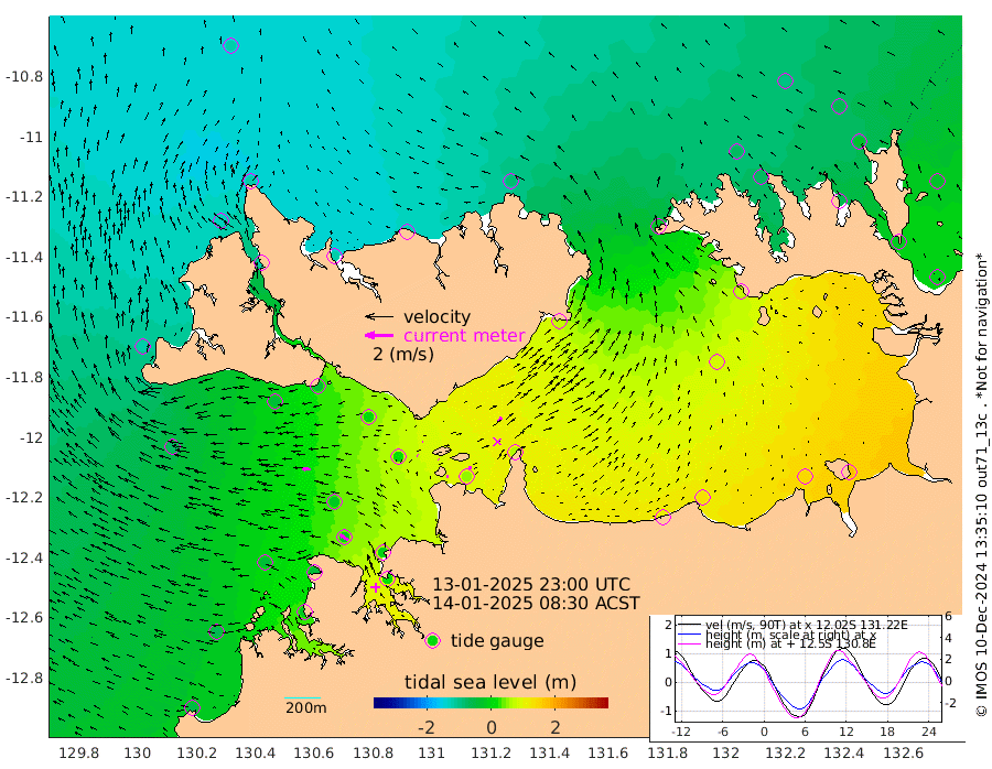 11cm/s 89T +4cm/s rms + 6cm/s 51T. Darwin_C1 52m 22cm/s 85T +4cm/s rms + 7cm/s -161T. Darwin_CW1 22m 5cm/s -57T +4cm/s rms + 8cm/s 61T. Darwin_CW2 34m 36cm/s 37T +3cm/s rms + 9cm/s 98T. Darwin_CW3 22m 2cm/s 128T +5cm/s rms + 7cm/s 88T. Darwin_C3 56m 4cm/s -113T +2cm/s rms + 9cm/s -126T. Darwin_CTbW 22m 59cm/s -86T +1cm/s rms + 1cm/s -47T. DARBGF 30m 68cm/s -55T +4cm/s rms + 3cm/s 80T. NRSDAR 19m -121cm Goodrich Bank -55cm Point Jenny -57cm Native Point -41cm Fish Reef -36cm Tapa Bay -119cm Point Fawcett (Offshore) -13cm Burge Point -43cm Munkunuwa -73cm Beagle A 1cm Parsons Bank -18cm Fenton Patches 12cm Hancox Shoal Area -8cm Nightcliff 13cm Darwin -21cm Charles Point Patches 48cm Glyde Point 103cm Chambers Bay 128cm Point Stuart 65cm Cape Hotham 87cm Christine Reef 146cm West Alligator Head 174cm East Field Island 70cm Two Hills Bay 68cm Camp Point -38cm Medina Inlet South -115cm South Barlow Point -129cm St. Asaph Bay -123cm Cape Van Dieman -121cm Snake Bay -116cm Cache Point -89cm Point Jahleel (Off) -33cm Cape Don -70cm Port Essington -75cm Smith Point - West -66cm NW Peacock Island -92cm North Of Jones Shoal -29cm Peacock Island -18cm Point David -63cm D'urville Point -8cm Copeland Island -29cm One Tree Point