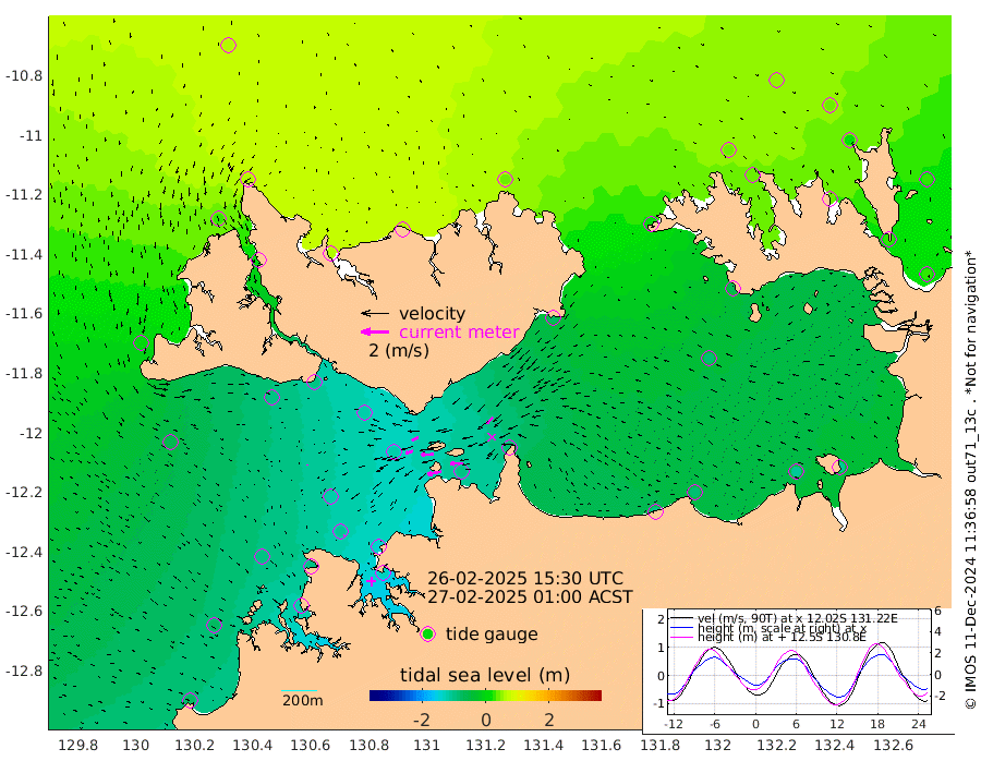 104cm/s -101T +4cm/s rms + 6cm/s 51T. Darwin_C1 52m 92cm/s -91T +4cm/s rms + 7cm/s -161T. Darwin_CW1 22m 55cm/s -107T +4cm/s rms + 8cm/s 61T. Darwin_CW2 34m 63cm/s -136T +3cm/s rms + 9cm/s 98T. Darwin_CW3 22m 86cm/s -91T +5cm/s rms + 7cm/s 88T. Darwin_C3 56m 51cm/s -115T +2cm/s rms + 9cm/s -126T. Darwin_CTbW 22m 5cm/s -166T +1cm/s rms + 1cm/s -47T. DARBGF 30m 7cm/s -165T +4cm/s rms + 3cm/s 80T. NRSDAR 19m 63cm Goodrich Bank -78cm Point Jenny -77cm Native Point -91cm Fish Reef -100cm Tapa Bay 0cm Point Fawcett (Offshore) -118cm Burge Point -100cm Munkunuwa -62cm Beagle A -113cm Parsons Bank -116cm Fenton Patches -118cm Hancox Shoal Area -135cm Nightcliff -133cm Darwin -103cm Charles Point Patches -99cm Glyde Point -95cm Chambers Bay -90cm Point Stuart -87cm Cape Hotham -82cm Christine Reef -103cm West Alligator Head -103cm East Field Island -65cm Two Hills Bay -69cm Camp Point -99cm Medina Inlet South 8cm South Barlow Point 29cm St. Asaph Bay 62cm Cape Van Dieman 58cm Snake Bay 60cm Cache Point 39cm Point Jahleel (Off) 0cm Cape Don 41cm Port Essington 39cm Smith Point - West 44cm NW Peacock Island 51cm North Of Jones Shoal 17cm Peacock Island 28cm Point David 40cm D'urville Point 23cm Copeland Island 29cm One Tree Point