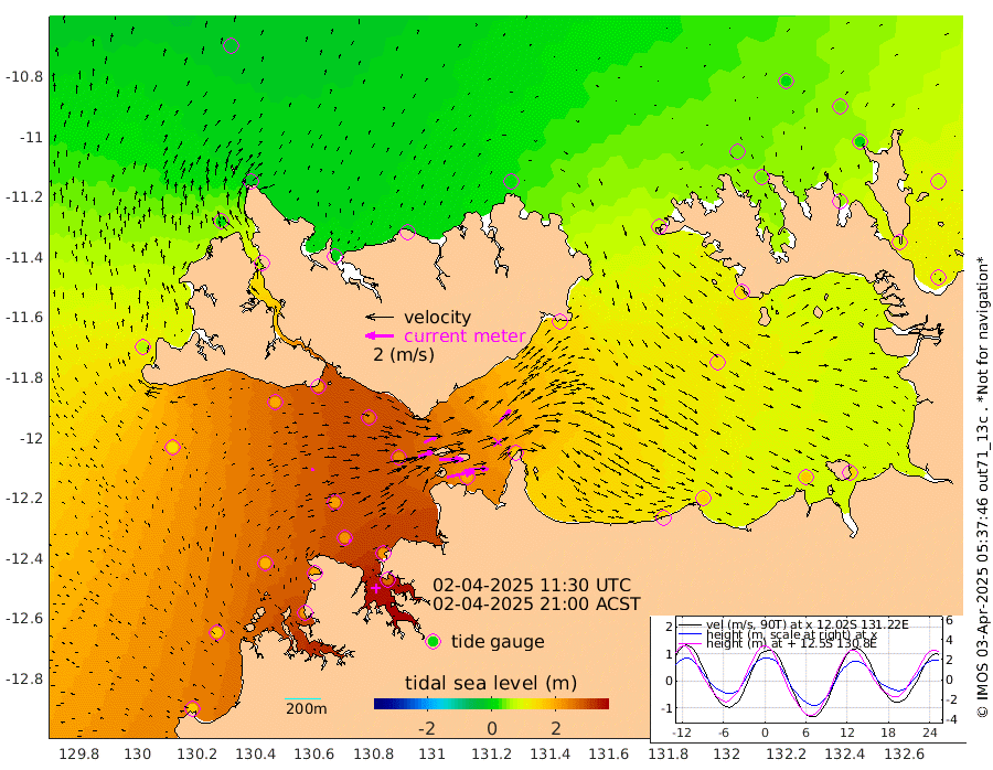 199cm/s 78T +4cm/s rms + 6cm/s 51T. Darwin_C1 52m 137cm/s 91T +4cm/s rms + 7cm/s -161T. Darwin_CW1 22m 106cm/s 73T +4cm/s rms + 8cm/s 61T. Darwin_CW2 34m 115cm/s 44T +3cm/s rms + 9cm/s 98T. Darwin_CW3 22m 170cm/s 89T +5cm/s rms + 7cm/s 88T. Darwin_C3 56m 100cm/s 65T +2cm/s rms + 9cm/s -126T. Darwin_CTbW 22m 18cm/s 66T +1cm/s rms + 1cm/s -47T. DARBGF 30m 15cm/s 71T +4cm/s rms + 3cm/s 80T. NRSDAR 19m -24cm Goodrich Bank 166cm Point Jenny 166cm Native Point 189cm Fish Reef 201cm Tapa Bay 62cm Point Fawcett (Offshore) 224cm Burge Point 194cm Munkunuwa 135cm Beagle A 239cm Parsons Bank 210cm Fenton Patches 228cm Hancox Shoal Area 225cm Nightcliff 260cm Darwin 223cm Charles Point Patches 193cm Glyde Point 148cm Chambers Bay 156cm Point Stuart 168cm Cape Hotham 133cm Christine Reef 165cm West Alligator Head 148cm East Field Island 140cm Two Hills Bay 131cm Camp Point 203cm Medina Inlet South 58cm South Barlow Point 14cm St. Asaph Bay -19cm Cape Van Dieman -4cm Snake Bay -15cm Cache Point 13cm Point Jahleel (Off) 77cm Cape Don 36cm Port Essington 34cm Smith Point - West 36cm NW Peacock Island 3cm North Of Jones Shoal 5cm Peacock Island 79cm Point David 46cm D'urville Point 83cm Copeland Island 70cm One Tree Point