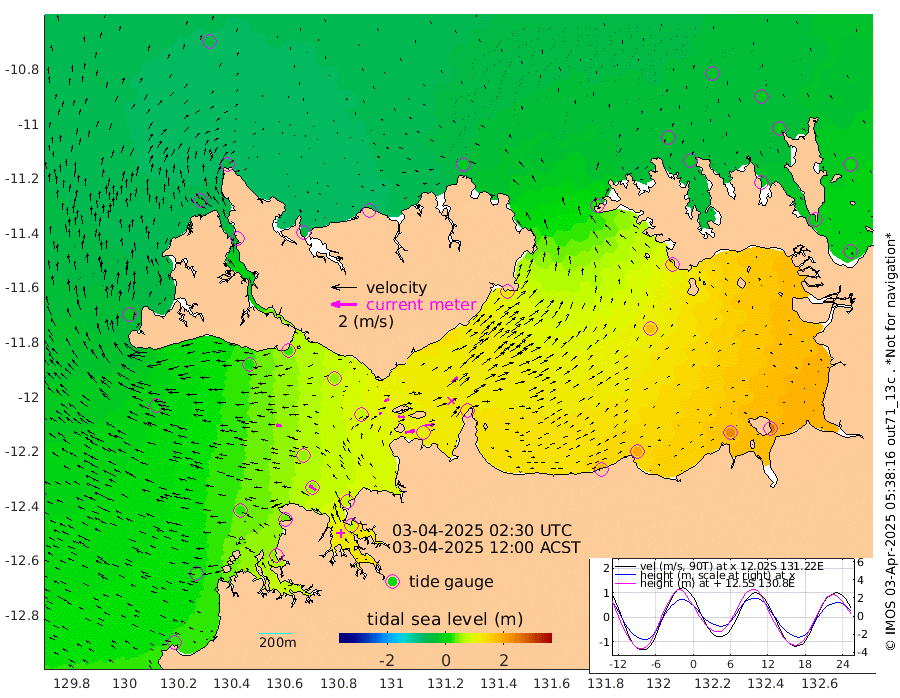 75cm/s 79T +4cm/s rms + 6cm/s 51T. Darwin_C1 52m 71cm/s 90T +4cm/s rms + 7cm/s -161T. Darwin_CW1 22m 20cm/s 70T +4cm/s rms + 8cm/s 61T. Darwin_CW2 34m 57cm/s 44T +3cm/s rms + 9cm/s 98T. Darwin_CW3 22m 53cm/s 93T +5cm/s rms + 7cm/s 88T. Darwin_C3 56m 41cm/s 67T +2cm/s rms + 9cm/s -126T. Darwin_CTbW 22m 48cm/s -81T +1cm/s rms + 1cm/s -47T. DARBGF 30m 63cm/s -53T +4cm/s rms + 3cm/s 80T. NRSDAR 19m -48cm Goodrich Bank 33cm Point Jenny 28cm Native Point 32cm Fish Reef 41cm Tapa Bay -22cm Point Fawcett (Offshore) 56cm Burge Point 13cm Munkunuwa 12cm Beagle A 50cm Parsons Bank 51cm Fenton Patches 72cm Hancox Shoal Area 69cm Nightcliff 70cm Darwin 47cm Charles Point Patches 110cm Glyde Point 181cm Chambers Bay 198cm Point Stuart 126cm Cape Hotham 175cm Christine Reef 225cm West Alligator Head 256cm East Field Island 141cm Two Hills Bay 131cm Camp Point 32cm Medina Inlet South -44cm South Barlow Point -45cm St. Asaph Bay -53cm Cape Van Dieman -55cm Snake Bay -37cm Cache Point -18cm Point Jahleel (Off) 31cm Cape Don -20cm Port Essington -19cm Smith Point - West -18cm NW Peacock Island -26cm North Of Jones Shoal -9cm Peacock Island -1cm Point David -20cm D'urville Point 3cm Copeland Island 0cm One Tree Point