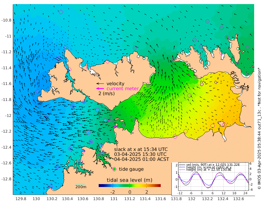 104cm/s -102T +4cm/s rms + 6cm/s 51T. Darwin_C1 52m 70cm/s -87T +4cm/s rms + 7cm/s -161T. Darwin_CW1 22m 80cm/s -107T +4cm/s rms + 8cm/s 61T. Darwin_CW2 34m 23cm/s -108T +3cm/s rms + 9cm/s 98T. Darwin_CW3 22m 98cm/s -93T +5cm/s rms + 7cm/s 88T. Darwin_C3 56m 60cm/s -116T +2cm/s rms + 9cm/s -126T. Darwin_CTbW 22m 85cm/s -90T +1cm/s rms + 1cm/s -47T. DARBGF 30m 81cm/s -58T +4cm/s rms + 3cm/s 80T. NRSDAR 19m -130cm Goodrich Bank -181cm Point Jenny -184cm Native Point -184cm Fish Reef -184cm Tapa Bay -191cm Point Fawcett (Offshore) -176cm Burge Point -195cm Munkunuwa -183cm Beagle A -163cm Parsons Bank -168cm Fenton Patches -140cm Hancox Shoal Area -163cm Nightcliff -167cm Darwin -189cm Charles Point Patches -57cm Glyde Point 57cm Chambers Bay 89cm Point Stuart -14cm Cape Hotham 46cm Christine Reef 111cm West Alligator Head 160cm East Field Island 23cm Two Hills Bay 14cm Camp Point -191cm Medina Inlet South -184cm South Barlow Point -173cm St. Asaph Bay -137cm Cape Van Dieman -141cm Snake Bay -128cm Cache Point -110cm Point Jahleel (Off) -79cm Cape Don -104cm Port Essington -106cm Smith Point - West -94cm NW Peacock Island -110cm North Of Jones Shoal -37cm Peacock Island -59cm Point David -97cm D'urville Point -51cm Copeland Island -69cm One Tree Point