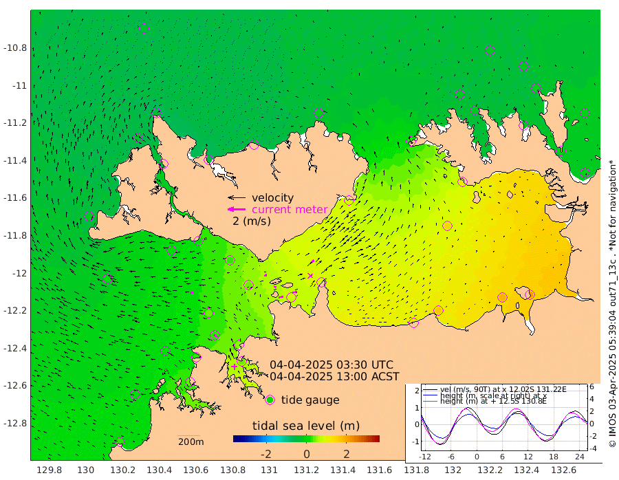 52cm/s 79T +4cm/s rms + 6cm/s 51T. Darwin_C1 52m 53cm/s 89T +4cm/s rms + 7cm/s -161T. Darwin_CW1 22m 5cm/s 76T +4cm/s rms + 8cm/s 61T. Darwin_CW2 34m 43cm/s 42T +3cm/s rms + 9cm/s 98T. Darwin_CW3 22m 27cm/s 95T +5cm/s rms + 7cm/s 88T. Darwin_C3 56m 31cm/s 68T +2cm/s rms + 9cm/s -126T. Darwin_CTbW 22m 37cm/s -82T +1cm/s rms + 1cm/s -47T. DARBGF 30m 46cm/s -54T +4cm/s rms + 3cm/s 80T. NRSDAR 19m -31cm Goodrich Bank 25cm Point Jenny 21cm Native Point 22cm Fish Reef 27cm Tapa Bay -12cm Point Fawcett (Offshore) 38cm Burge Point 2cm Munkunuwa 12cm Beagle A 26cm Parsons Bank 36cm Fenton Patches 45cm Hancox Shoal Area 46cm Nightcliff 41cm Darwin 26cm Charles Point Patches 82cm Glyde Point 146cm Chambers Bay 160cm Point Stuart 97cm Cape Hotham 142cm Christine Reef 183cm West Alligator Head 210cm East Field Island 113cm Two Hills Bay 105cm Camp Point 17cm Medina Inlet South -35cm South Barlow Point -30cm St. Asaph Bay -36cm Cape Van Dieman -40cm Snake Bay -21cm Cache Point -10cm Point Jahleel (Off) 25cm Cape Don -17cm Port Essington -16cm Smith Point - West -16cm NW Peacock Island -19cm North Of Jones Shoal -7cm Peacock Island -9cm Point David -19cm D'urville Point -6cm Copeland Island -6cm One Tree Point
