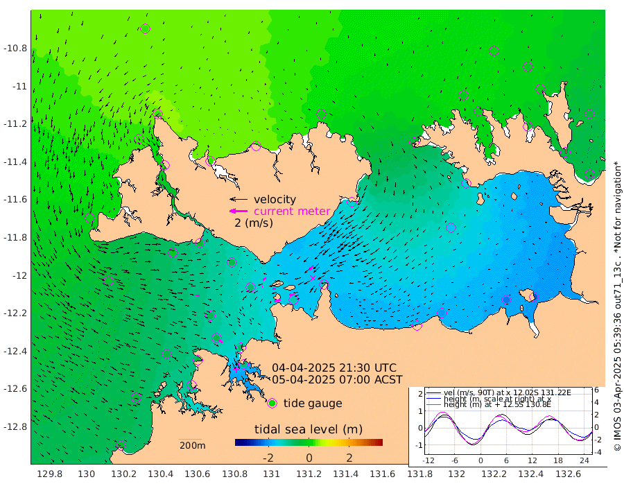 75cm/s -102T +4cm/s rms + 6cm/s 51T. Darwin_C1 52m 55cm/s -92T +4cm/s rms + 7cm/s -161T. Darwin_CW1 22m 5cm/s -91T +4cm/s rms + 8cm/s 61T. Darwin_CW2 34m 70cm/s -140T +3cm/s rms + 9cm/s 98T. Darwin_CW3 22m 34cm/s -86T +5cm/s rms + 7cm/s 88T. Darwin_C3 56m 38cm/s -115T +2cm/s rms + 9cm/s -126T. Darwin_CTbW 22m 41cm/s 97T +1cm/s rms + 1cm/s -47T. DARBGF 30m 49cm/s 127T +4cm/s rms + 3cm/s 80T. NRSDAR 19m 30cm Goodrich Bank -44cm Point Jenny -39cm Native Point -48cm Fish Reef -51cm Tapa Bay 6cm Point Fawcett (Offshore) -68cm Burge Point -18cm Munkunuwa -27cm Beagle A -65cm Parsons Bank -63cm Fenton Patches -80cm Hancox Shoal Area -72cm Nightcliff -85cm Darwin -65cm Charles Point Patches -121cm Glyde Point -177cm Chambers Bay -197cm Point Stuart -134cm Cape Hotham -164cm Christine Reef -217cm West Alligator Head -244cm East Field Island -147cm Two Hills Bay -138cm Camp Point -44cm Medina Inlet South 24cm South Barlow Point 31cm St. Asaph Bay 32cm Cape Van Dieman 30cm Snake Bay 15cm Cache Point -1cm Point Jahleel (Off) -54cm Cape Don -12cm Port Essington -9cm Smith Point - West -15cm NW Peacock Island 1cm North Of Jones Shoal -2cm Peacock Island -46cm Point David -16cm D'urville Point -50cm Copeland Island -44cm One Tree Point