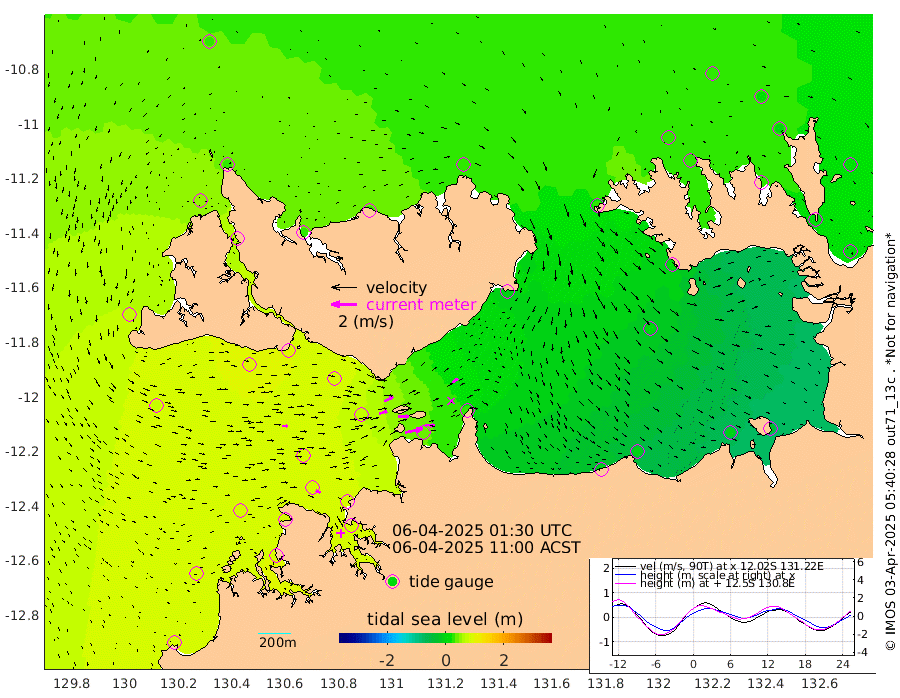 138cm/s 78T +4cm/s rms + 6cm/s 51T. Darwin_C1 52m 75cm/s 94T +4cm/s rms + 7cm/s -161T. Darwin_CW1 22m 64cm/s 73T +4cm/s rms + 8cm/s 61T. Darwin_CW2 34m 53cm/s 54T +3cm/s rms + 9cm/s 98T. Darwin_CW3 22m 88cm/s 89T +5cm/s rms + 7cm/s 88T. Darwin_C3 56m 77cm/s 65T +2cm/s rms + 9cm/s -126T. Darwin_CTbW 22m 40cm/s 88T +1cm/s rms + 1cm/s -47T. DARBGF 30m 37cm/s 114T +4cm/s rms + 3cm/s 80T. NRSDAR 19m 24cm Goodrich Bank 83cm Point Jenny 83cm Native Point 89cm Fish Reef 89cm Tapa Bay 69cm Point Fawcett (Offshore) 82cm Burge Point 101cm Munkunuwa 73cm Beagle A 90cm Parsons Bank 79cm Fenton Patches 78cm Hancox Shoal Area 87cm Nightcliff 87cm Darwin 82cm Charles Point Patches 42cm Glyde Point 0cm Chambers Bay -3cm Point Stuart 26cm Cape Hotham 4cm Christine Reef -4cm West Alligator Head -29cm East Field Island 17cm Two Hills Bay -1cm Camp Point 93cm Medina Inlet South 62cm South Barlow Point 51cm St. Asaph Bay 28cm Cape Van Dieman 31cm Snake Bay 26cm Cache Point 28cm Point Jahleel (Off) 29cm Cape Don 24cm Port Essington 30cm Smith Point - West 22cm NW Peacock Island 23cm North Of Jones Shoal 8cm Peacock Island 9cm Point David 25cm D'urville Point 7cm Copeland Island 13cm One Tree Point