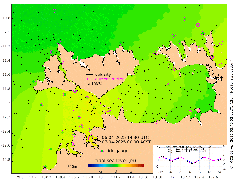 81cm/s 78T +4cm/s rms + 6cm/s 51T. Darwin_C1 52m 31cm/s 90T +4cm/s rms + 7cm/s -161T. Darwin_CW1 22m 17cm/s 76T +4cm/s rms + 8cm/s 61T. Darwin_CW2 34m 41cm/s 45T +3cm/s rms + 9cm/s 98T. Darwin_CW3 22m 27cm/s 91T +5cm/s rms + 7cm/s 88T. Darwin_C3 56m 45cm/s 64T +2cm/s rms + 9cm/s -126T. Darwin_CTbW 22m 5cm/s 88T +1cm/s rms + 1cm/s -47T. DARBGF 30m 2cm/s 48T +4cm/s rms + 3cm/s 80T. NRSDAR 19m -4cm Goodrich Bank 27cm Point Jenny 23cm Native Point 35cm Fish Reef 32cm Tapa Bay 16cm Point Fawcett (Offshore) 30cm Burge Point 24cm Munkunuwa 13cm Beagle A 48cm Parsons Bank 24cm Fenton Patches 46cm Hancox Shoal Area 37cm Nightcliff 48cm Darwin 41cm Charles Point Patches 45cm Glyde Point 47cm Chambers Bay 55cm Point Stuart 49cm Cape Hotham 38cm Christine Reef 56cm West Alligator Head 50cm East Field Island 54cm Two Hills Bay 35cm Camp Point 34cm Medina Inlet South 11cm South Barlow Point 0cm St. Asaph Bay 0cm Cape Van Dieman 6cm Snake Bay 6cm Cache Point 13cm Point Jahleel (Off) 39cm Cape Don 33cm Port Essington 33cm Smith Point - West 37cm NW Peacock Island 26cm North Of Jones Shoal 12cm Peacock Island 62cm Point David 42cm D'urville Point 64cm Copeland Island 60cm One Tree Point