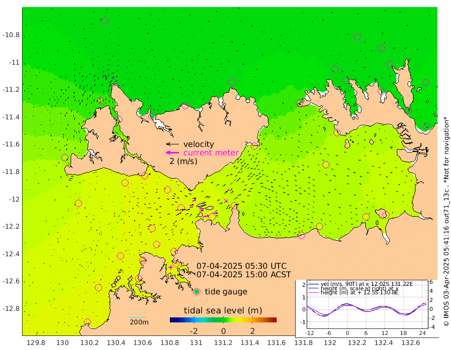 98cm/s 78T +4cm/s rms + 6cm/s 51T. Darwin_C1 52m 74cm/s 92T +4cm/s rms + 7cm/s -161T. Darwin_CW1 22m 46cm/s 73T +4cm/s rms + 8cm/s 61T. Darwin_CW2 34m 53cm/s 46T +3cm/s rms + 9cm/s 98T. Darwin_CW3 22m 66cm/s 90T +5cm/s rms + 7cm/s 88T. Darwin_C3 56m 57cm/s 66T +2cm/s rms + 9cm/s -126T. Darwin_CTbW 22m 17cm/s 80T +1cm/s rms + 1cm/s -47T. DARBGF 30m 13cm/s 109T +4cm/s rms + 3cm/s 80T. NRSDAR 19m 8cm Goodrich Bank 110cm Point Jenny 109cm Native Point 115cm Fish Reef 115cm Tapa Bay 65cm Point Fawcett (Offshore) 124cm Burge Point 103cm Munkunuwa 102cm Beagle A 105cm Parsons Bank 122cm Fenton Patches 105cm Hancox Shoal Area 118cm Nightcliff 118cm Darwin 109cm Charles Point Patches 101cm Glyde Point 95cm Chambers Bay 96cm Point Stuart 90cm Cape Hotham 88cm Christine Reef 105cm West Alligator Head 105cm East Field Island 80cm Two Hills Bay 78cm Camp Point 108cm Medina Inlet South 41cm South Barlow Point 35cm St. Asaph Bay 10cm Cape Van Dieman 8cm Snake Bay 16cm Cache Point 21cm Point Jahleel (Off) 42cm Cape Don 13cm Port Essington 13cm Smith Point - West 7cm NW Peacock Island 4cm North Of Jones Shoal 1cm Peacock Island 4cm Point David 8cm D'urville Point 3cm Copeland Island 7cm One Tree Point