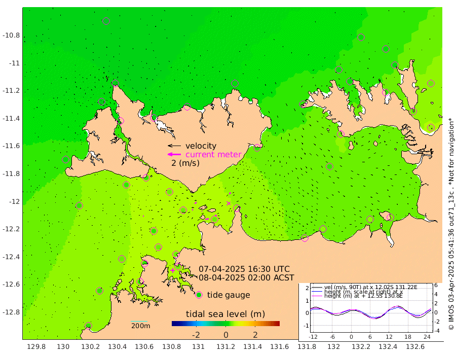 54cm/s 79T +4cm/s rms + 6cm/s 51T. Darwin_C1 52m 19cm/s 83T +4cm/s rms + 7cm/s -161T. Darwin_CW1 22m 10cm/s 74T +4cm/s rms + 8cm/s 61T. Darwin_CW2 34m 26cm/s 46T +3cm/s rms + 9cm/s 98T. Darwin_CW3 22m 8cm/s 92T +5cm/s rms + 7cm/s 88T. Darwin_C3 56m 31cm/s 64T +2cm/s rms + 9cm/s -126T. Darwin_CTbW 22m 10cm/s 94T +1cm/s rms + 1cm/s -47T. DARBGF 30m 7cm/s 116T +4cm/s rms + 3cm/s 80T. NRSDAR 19m -15cm Goodrich Bank 33cm Point Jenny 28cm Native Point 40cm Fish Reef 34cm Tapa Bay 16cm Point Fawcett (Offshore) 34cm Burge Point 24cm Munkunuwa 23cm Beagle A 42cm Parsons Bank 32cm Fenton Patches 41cm Hancox Shoal Area 38cm Nightcliff 40cm Darwin 34cm Charles Point Patches 40cm Glyde Point 46cm Chambers Bay 50cm Point Stuart 45cm Cape Hotham 33cm Christine Reef 51cm West Alligator Head 47cm East Field Island 45cm Two Hills Bay 30cm Camp Point 31cm Medina Inlet South 3cm South Barlow Point -5cm St. Asaph Bay -10cm Cape Van Dieman -9cm Snake Bay -3cm Cache Point 3cm Point Jahleel (Off) 28cm Cape Don 18cm Port Essington 19cm Smith Point - West 21cm NW Peacock Island 12cm North Of Jones Shoal 7cm Peacock Island 43cm Point David 26cm D'urville Point 46cm Copeland Island 40cm One Tree Point