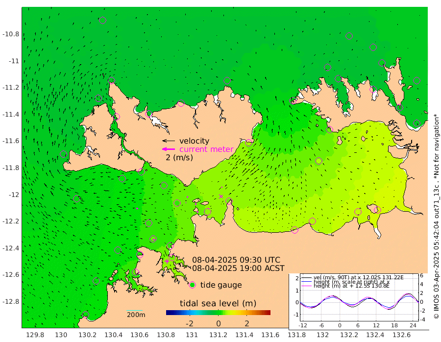 24cm/s -100T +4cm/s rms + 6cm/s 51T. Darwin_C1 52m 11cm/s 87T +4cm/s rms + 7cm/s -161T. Darwin_CW1 22m 2cm/s 80T +4cm/s rms + 8cm/s 61T. Darwin_CW2 34m 9cm/s 18T +3cm/s rms + 9cm/s 98T. Darwin_CW3 22m 22cm/s 92T +5cm/s rms + 7cm/s 88T. Darwin_C3 56m 20cm/s -116T +2cm/s rms + 9cm/s -126T. Darwin_CTbW 22m 29cm/s -82T +1cm/s rms + 1cm/s -47T. DARBGF 30m 32cm/s -54T +4cm/s rms + 3cm/s 80T. NRSDAR 19m -13cm Goodrich Bank 12cm Point Jenny 14cm Native Point 11cm Fish Reef 23cm Tapa Bay -14cm Point Fawcett (Offshore) 37cm Burge Point 16cm Munkunuwa 4cm Beagle A 25cm Parsons Bank 27cm Fenton Patches 32cm Hancox Shoal Area 28cm Nightcliff 43cm Darwin 34cm Charles Point Patches 47cm Glyde Point 62cm Chambers Bay 66cm Point Stuart 44cm Cape Hotham 58cm Christine Reef 75cm West Alligator Head 90cm East Field Island 41cm Two Hills Bay 58cm Camp Point 21cm Medina Inlet South -14cm South Barlow Point -16cm St. Asaph Bay -17cm Cape Van Dieman -16cm Snake Bay -17cm Cache Point -11cm Point Jahleel (Off) 2cm Cape Don -15cm Port Essington -22cm Smith Point - West -20cm NW Peacock Island -22cm North Of Jones Shoal -8cm Peacock Island -11cm Point David -23cm D'urville Point -13cm Copeland Island -13cm One Tree Point