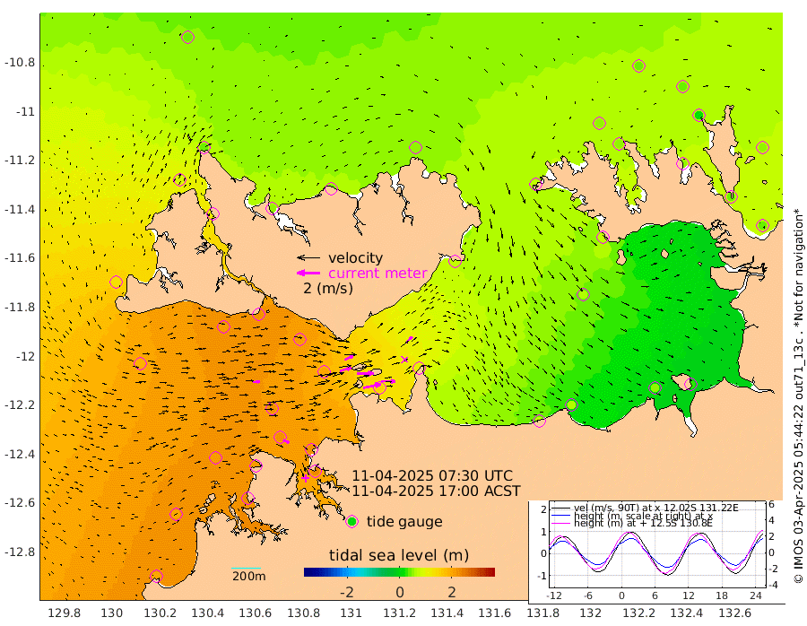 156cm/s 77T +4cm/s rms + 6cm/s 51T. Darwin_C1 52m 127cm/s 91T +4cm/s rms + 7cm/s -161T. Darwin_CW1 22m 100cm/s 74T +4cm/s rms + 8cm/s 61T. Darwin_CW2 34m 77cm/s 46T +3cm/s rms + 9cm/s 98T. Darwin_CW3 22m 146cm/s 89T +5cm/s rms + 7cm/s 88T. Darwin_C3 56m 82cm/s 65T +2cm/s rms + 9cm/s -126T. Darwin_CTbW 22m 57cm/s 87T +1cm/s rms + 1cm/s -47T. DARBGF 30m 55cm/s 115T +4cm/s rms + 3cm/s 80T. NRSDAR 19m 34cm Goodrich Bank 196cm Point Jenny 196cm Native Point 213cm Fish Reef 213cm Tapa Bay 127cm Point Fawcett (Offshore) 225cm Burge Point 208cm Munkunuwa 184cm Beagle A 213cm Parsons Bank 222cm Fenton Patches 198cm Hancox Shoal Area 219cm Nightcliff 233cm Darwin 222cm Charles Point Patches 146cm Glyde Point 72cm Chambers Bay 57cm Point Stuart 106cm Cape Hotham 63cm Christine Reef 53cm West Alligator Head 26cm East Field Island 71cm Two Hills Bay 75cm Camp Point 215cm Medina Inlet South 114cm South Barlow Point 84cm St. Asaph Bay 41cm Cape Van Dieman 47cm Snake Bay 40cm Cache Point 46cm Point Jahleel (Off) 73cm Cape Don 52cm Port Essington 52cm Smith Point - West 44cm NW Peacock Island 35cm North Of Jones Shoal 13cm Peacock Island 45cm Point David 51cm D'urville Point 44cm Copeland Island 47cm One Tree Point