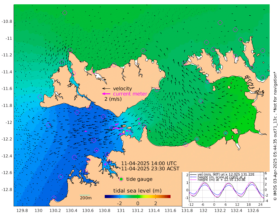 160cm/s -101T +4cm/s rms + 6cm/s 51T. Darwin_C1 52m 138cm/s -90T +4cm/s rms + 7cm/s -161T. Darwin_CW1 22m 106cm/s -107T +4cm/s rms + 8cm/s 61T. Darwin_CW2 34m 67cm/s -134T +3cm/s rms + 9cm/s 98T. Darwin_CW3 22m 154cm/s -91T +5cm/s rms + 7cm/s 88T. Darwin_C3 56m 91cm/s -115T +2cm/s rms + 9cm/s -126T. Darwin_CTbW 22m 57cm/s -94T +1cm/s rms + 1cm/s -47T. DARBGF 30m 49cm/s -65T +4cm/s rms + 3cm/s 80T. NRSDAR 19m -28cm Goodrich Bank -214cm Point Jenny -212cm Native Point -237cm Fish Reef -234cm Tapa Bay -137cm Point Fawcett (Offshore) -253cm Burge Point -227cm Munkunuwa -201cm Beagle A -240cm Parsons Bank -247cm Fenton Patches -229cm Hancox Shoal Area -253cm Nightcliff -264cm Darwin -247cm Charles Point Patches -173cm Glyde Point -106cm Chambers Bay -92cm Point Stuart -141cm Cape Hotham -94cm Christine Reef -93cm West Alligator Head -67cm East Field Island -101cm Two Hills Bay -99cm Camp Point -237cm Medina Inlet South -118cm South Barlow Point -86cm St. Asaph Bay -35cm Cape Van Dieman -42cm Snake Bay -39cm Cache Point -50cm Point Jahleel (Off) -86cm Cape Don -57cm Port Essington -58cm Smith Point - West -50cm NW Peacock Island -43cm North Of Jones Shoal -17cm Peacock Island -55cm Point David -58cm D'urville Point -57cm Copeland Island -60cm One Tree Point