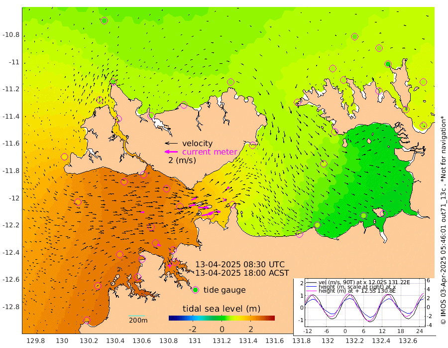 171cm/s 77T +4cm/s rms + 6cm/s 51T. Darwin_C1 52m 141cm/s 90T +4cm/s rms + 7cm/s -161T. Darwin_CW1 22m 109cm/s 74T +4cm/s rms + 8cm/s 61T. Darwin_CW2 34m 87cm/s 46T +3cm/s rms + 9cm/s 98T. Darwin_CW3 22m 162cm/s 89T +5cm/s rms + 7cm/s 88T. Darwin_C3 56m 91cm/s 65T +2cm/s rms + 9cm/s -126T. Darwin_CTbW 22m 56cm/s 86T +1cm/s rms + 1cm/s -47T. DARBGF 30m 55cm/s 113T +4cm/s rms + 3cm/s 80T. NRSDAR 19m 30cm Goodrich Bank 203cm Point Jenny 203cm Native Point 220cm Fish Reef 225cm Tapa Bay 126cm Point Fawcett (Offshore) 241cm Burge Point 222cm Munkunuwa 186cm Beagle A 235cm Parsons Bank 233cm Fenton Patches 220cm Hancox Shoal Area 242cm Nightcliff 257cm Darwin 241cm Charles Point Patches 158cm Glyde Point 76cm Chambers Bay 58cm Point Stuart 116cm Cape Hotham 68cm Christine Reef 53cm West Alligator Head 22cm East Field Island 76cm Two Hills Bay 82cm Camp Point 230cm Medina Inlet South 120cm South Barlow Point 82cm St. Asaph Bay 38cm Cape Van Dieman 49cm Snake Bay 35cm Cache Point 46cm Point Jahleel (Off) 80cm Cape Don 58cm Port Essington 57cm Smith Point - West 51cm NW Peacock Island 40cm North Of Jones Shoal 16cm Peacock Island 61cm Point David 60cm D'urville Point 61cm Copeland Island 63cm One Tree Point