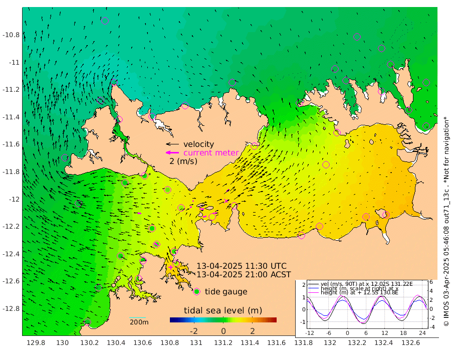 49cm/s 80T +4cm/s rms + 6cm/s 51T. Darwin_C1 52m 61cm/s 90T +4cm/s rms + 7cm/s -161T. Darwin_CW1 22m 27cm/s 68T +4cm/s rms + 8cm/s 61T. Darwin_CW2 34m 51cm/s 44T +3cm/s rms + 9cm/s 98T. Darwin_CW3 22m 70cm/s 91T +5cm/s rms + 7cm/s 88T. Darwin_C3 56m 14cm/s 66T +2cm/s rms + 9cm/s -126T. Darwin_CTbW 22m 57cm/s -82T +1cm/s rms + 1cm/s -47T. DARBGF 30m 73cm/s -52T +4cm/s rms + 3cm/s 80T. NRSDAR 19m -96cm Goodrich Bank -17cm Point Jenny -20cm Native Point 4cm Fish Reef 4cm Tapa Bay -79cm Point Fawcett (Offshore) 29cm Burge Point -1cm Munkunuwa -40cm Beagle A 42cm Parsons Bank 18cm Fenton Patches 49cm Hancox Shoal Area 31cm Nightcliff 66cm Darwin 31cm Charles Point Patches 91cm Glyde Point 141cm Chambers Bay 168cm Point Stuart 100cm Cape Hotham 121cm Christine Reef 191cm West Alligator Head 218cm East Field Island 109cm Two Hills Bay 100cm Camp Point 13cm Medina Inlet South -81cm South Barlow Point -98cm St. Asaph Bay -100cm Cape Van Dieman -94cm Snake Bay -91cm Cache Point -64cm Point Jahleel (Off) -2cm Cape Don -47cm Port Essington -55cm Smith Point - West -50cm NW Peacock Island -68cm North Of Jones Shoal -21cm Peacock Island -14cm Point David -48cm D'urville Point -7cm Copeland Island -16cm One Tree Point