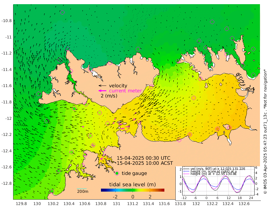 77cm/s 80T +4cm/s rms + 6cm/s 51T. Darwin_C1 52m 86cm/s 90T +4cm/s rms + 7cm/s -161T. Darwin_CW1 22m 37cm/s 70T +4cm/s rms + 8cm/s 61T. Darwin_CW2 34m 56cm/s 45T +3cm/s rms + 9cm/s 98T. Darwin_CW3 22m 86cm/s 91T +5cm/s rms + 7cm/s 88T. Darwin_C3 56m 34cm/s 67T +2cm/s rms + 9cm/s -126T. Darwin_CTbW 22m 44cm/s -79T +1cm/s rms + 1cm/s -47T. DARBGF 30m 64cm/s -52T +4cm/s rms + 3cm/s 80T. NRSDAR 19m -52cm Goodrich Bank 27cm Point Jenny 24cm Native Point 44cm Fish Reef 49cm Tapa Bay -19cm Point Fawcett (Offshore) 58cm Burge Point 29cm Munkunuwa 6cm Beagle A 64cm Parsons Bank 52cm Fenton Patches 83cm Hancox Shoal Area 74cm Nightcliff 93cm Darwin 67cm Charles Point Patches 116cm Glyde Point 171cm Chambers Bay 193cm Point Stuart 131cm Cape Hotham 151cm Christine Reef 219cm West Alligator Head 244cm East Field Island 140cm Two Hills Bay 125cm Camp Point 49cm Medina Inlet South -39cm South Barlow Point -45cm St. Asaph Bay -57cm Cape Van Dieman -52cm Snake Bay -42cm Cache Point -20cm Point Jahleel (Off) 28cm Cape Don -18cm Port Essington -21cm Smith Point - West -19cm NW Peacock Island -25cm North Of Jones Shoal -8cm Peacock Island 4cm Point David -20cm D'urville Point 8cm Copeland Island 5cm One Tree Point