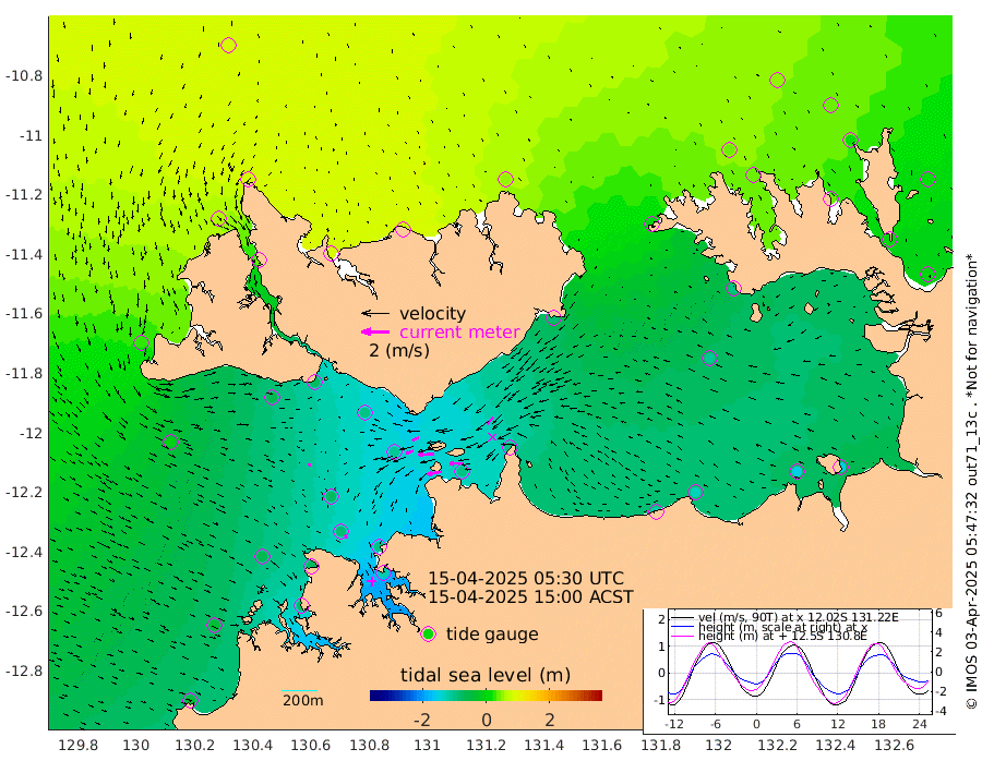 107cm/s -100T +4cm/s rms + 6cm/s 51T. Darwin_C1 52m 100cm/s -92T +4cm/s rms + 7cm/s -161T. Darwin_CW1 22m 55cm/s -106T +4cm/s rms + 8cm/s 61T. Darwin_CW2 34m 65cm/s -136T +3cm/s rms + 9cm/s 98T. Darwin_CW3 22m 111cm/s -91T +5cm/s rms + 7cm/s 88T. Darwin_C3 56m 52cm/s -116T +2cm/s rms + 9cm/s -126T. Darwin_CTbW 22m 21cm/s 110T +1cm/s rms + 1cm/s -47T. DARBGF 30m 28cm/s 143T +4cm/s rms + 3cm/s 80T. NRSDAR 19m 83cm Goodrich Bank -42cm Point Jenny -39cm Native Point -58cm Fish Reef -69cm Tapa Bay 33cm Point Fawcett (Offshore) -77cm Burge Point -65cm Munkunuwa -8cm Beagle A -95cm Parsons Bank -68cm Fenton Patches -103cm Hancox Shoal Area -96cm Nightcliff -116cm Darwin -84cm Charles Point Patches -101cm Glyde Point -122cm Chambers Bay -129cm Point Stuart -97cm Cape Hotham -103cm Christine Reef -147cm West Alligator Head -152cm East Field Island -92cm Two Hills Bay -82cm Camp Point -70cm Medina Inlet South 41cm South Barlow Point 63cm St. Asaph Bay 84cm Cape Van Dieman 79cm Snake Bay 78cm Cache Point 52cm Point Jahleel (Off) -5cm Cape Don 38cm Port Essington 39cm Smith Point - West 40cm NW Peacock Island 56cm North Of Jones Shoal 17cm Peacock Island 10cm Point David 35cm D'urville Point 3cm Copeland Island 12cm One Tree Point