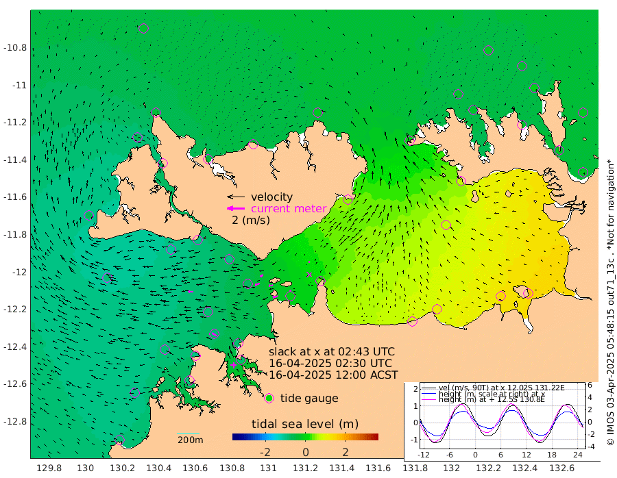 59cm/s -104T +4cm/s rms + 6cm/s 51T. Darwin_C1 52m 15cm/s -81T +4cm/s rms + 7cm/s -161T. Darwin_CW1 22m 57cm/s -111T +4cm/s rms + 8cm/s 61T. Darwin_CW2 34m 13cm/s -82T +3cm/s rms + 9cm/s 98T. Darwin_CW3 22m 43cm/s -96T +5cm/s rms + 7cm/s 88T. Darwin_C3 56m 38cm/s -118T +2cm/s rms + 9cm/s -126T. Darwin_CTbW 22m 58cm/s -88T +1cm/s rms + 1cm/s -47T. DARBGF 30m 59cm/s -58T +4cm/s rms + 3cm/s 80T. NRSDAR 19m -30cm Goodrich Bank -88cm Point Jenny -91cm Native Point -83cm Fish Reef -91cm Tapa Bay -65cm Point Fawcett (Offshore) -92cm Burge Point -111cm Munkunuwa -84cm Beagle A -93cm Parsons Bank -88cm Fenton Patches -72cm Hancox Shoal Area -86cm Nightcliff -80cm Darwin -85cm Charles Point Patches 0cm Glyde Point 87cm Chambers Bay 115cm Point Stuart 34cm Cape Hotham 76cm Christine Reef 135cm West Alligator Head 176cm East Field Island 68cm Two Hills Bay 54cm Camp Point -92cm Medina Inlet South -79cm South Barlow Point -58cm St. Asaph Bay -38cm Cape Van Dieman -41cm Snake Bay -25cm Cache Point -20cm Point Jahleel (Off) -9cm Cape Don -27cm Port Essington -30cm Smith Point - West -26cm NW Peacock Island -20cm North Of Jones Shoal -8cm Peacock Island -22cm Point David -33cm D'urville Point -21cm Copeland Island -18cm One Tree Point
