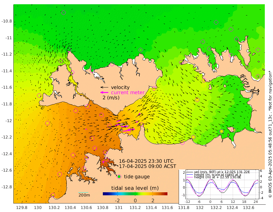205cm/s 78T +4cm/s rms + 6cm/s 51T. Darwin_C1 52m 145cm/s 93T +4cm/s rms + 7cm/s -161T. Darwin_CW1 22m 116cm/s 73T +4cm/s rms + 8cm/s 61T. Darwin_CW2 34m 110cm/s 46T +3cm/s rms + 9cm/s 98T. Darwin_CW3 22m 179cm/s 89T +5cm/s rms + 7cm/s 88T. Darwin_C3 56m 106cm/s 66T +2cm/s rms + 9cm/s -126T. Darwin_CTbW 22m 29cm/s 74T +1cm/s rms + 1cm/s -47T. DARBGF 30m 21cm/s 91T +4cm/s rms + 3cm/s 80T. NRSDAR 19m 0cm Goodrich Bank 179cm Point Jenny 178cm Native Point 186cm Fish Reef 209cm Tapa Bay 89cm Point Fawcett (Offshore) 212cm Burge Point 194cm Munkunuwa 147cm Beagle A 216cm Parsons Bank 206cm Fenton Patches 221cm Hancox Shoal Area 232cm Nightcliff 241cm Darwin 218cm Charles Point Patches 171cm Glyde Point 137cm Chambers Bay 124cm Point Stuart 142cm Cape Hotham 131cm Christine Reef 135cm West Alligator Head 118cm East Field Island 116cm Two Hills Bay 114cm Camp Point 202cm Medina Inlet South 74cm South Barlow Point 46cm St. Asaph Bay 2cm Cape Van Dieman 8cm Snake Bay 6cm Cache Point 25cm Point Jahleel (Off) 68cm Cape Don 27cm Port Essington 32cm Smith Point - West 25cm NW Peacock Island 13cm North Of Jones Shoal 5cm Peacock Island 35cm Point David 31cm D'urville Point 37cm Copeland Island 35cm One Tree Point