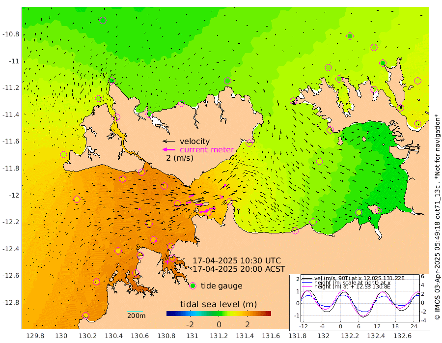 166cm/s 78T +4cm/s rms + 6cm/s 51T. Darwin_C1 52m 109cm/s 87T +4cm/s rms + 7cm/s -161T. Darwin_CW1 22m 80cm/s 75T +4cm/s rms + 8cm/s 61T. Darwin_CW2 34m 83cm/s 47T +3cm/s rms + 9cm/s 98T. Darwin_CW3 22m 117cm/s 89T +5cm/s rms + 7cm/s 88T. Darwin_C3 56m 92cm/s 64T +2cm/s rms + 9cm/s -126T. Darwin_CTbW 22m 29cm/s 82T +1cm/s rms + 1cm/s -47T. DARBGF 30m 26cm/s 102T +4cm/s rms + 3cm/s 80T. NRSDAR 19m 12cm Goodrich Bank 148cm Point Jenny 150cm Native Point 156cm Fish Reef 176cm Tapa Bay 77cm Point Fawcett (Offshore) 187cm Burge Point 171cm Munkunuwa 124cm Beagle A 197cm Parsons Bank 174cm Fenton Patches 187cm Hancox Shoal Area 196cm Nightcliff 212cm Darwin 190cm Charles Point Patches 136cm Glyde Point 73cm Chambers Bay 65cm Point Stuart 107cm Cape Hotham 69cm Christine Reef 63cm West Alligator Head 38cm East Field Island 75cm Two Hills Bay 81cm Camp Point 176cm Medina Inlet South 81cm South Barlow Point 45cm St. Asaph Bay 18cm Cape Van Dieman 33cm Snake Bay 14cm Cache Point 31cm Point Jahleel (Off) 66cm Cape Don 46cm Port Essington 45cm Smith Point - West 46cm NW Peacock Island 29cm North Of Jones Shoal 13cm Peacock Island 78cm Point David 54cm D'urville Point 78cm Copeland Island 70cm One Tree Point
