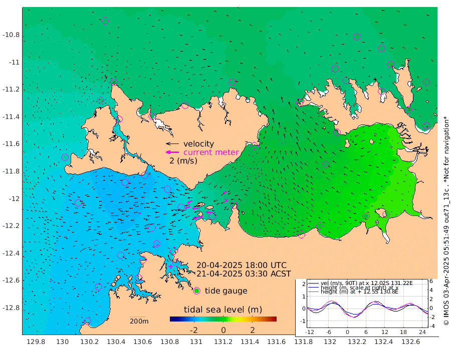 153cm/s -102T +4cm/s rms + 6cm/s 51T. Darwin_C1 52m 103cm/s -89T +4cm/s rms + 7cm/s -161T. Darwin_CW1 22m 74cm/s -107T +4cm/s rms + 8cm/s 61T. Darwin_CW2 34m 62cm/s -125T +3cm/s rms + 9cm/s 98T. Darwin_CW3 22m 106cm/s -91T +5cm/s rms + 7cm/s 88T. Darwin_C3 56m 85cm/s -116T +2cm/s rms + 9cm/s -126T. Darwin_CTbW 22m 35cm/s -96T +1cm/s rms + 1cm/s -47T. DARBGF 30m 24cm/s -71T +4cm/s rms + 3cm/s 80T. NRSDAR 19m -75cm Goodrich Bank -155cm Point Jenny -157cm Native Point -151cm Fish Reef -164cm Tapa Bay -120cm Point Fawcett (Offshore) -168cm Burge Point -159cm Munkunuwa -142cm Beagle A -164cm Parsons Bank -158cm Fenton Patches -152cm Hancox Shoal Area -157cm Nightcliff -171cm Darwin -171cm Charles Point Patches -104cm Glyde Point -39cm Chambers Bay -29cm Point Stuart -73cm Cape Hotham -55cm Christine Reef -24cm West Alligator Head 2cm East Field Island -53cm Two Hills Bay -56cm Camp Point -162cm Medina Inlet South -118cm South Barlow Point -100cm St. Asaph Bay -78cm Cape Van Dieman -82cm Snake Bay -76cm Cache Point -74cm Point Jahleel (Off) -81cm Cape Don -77cm Port Essington -79cm Smith Point - West -74cm NW Peacock Island -66cm North Of Jones Shoal -23cm Peacock Island -65cm Point David -77cm D'urville Point -61cm Copeland Island -66cm One Tree Point
