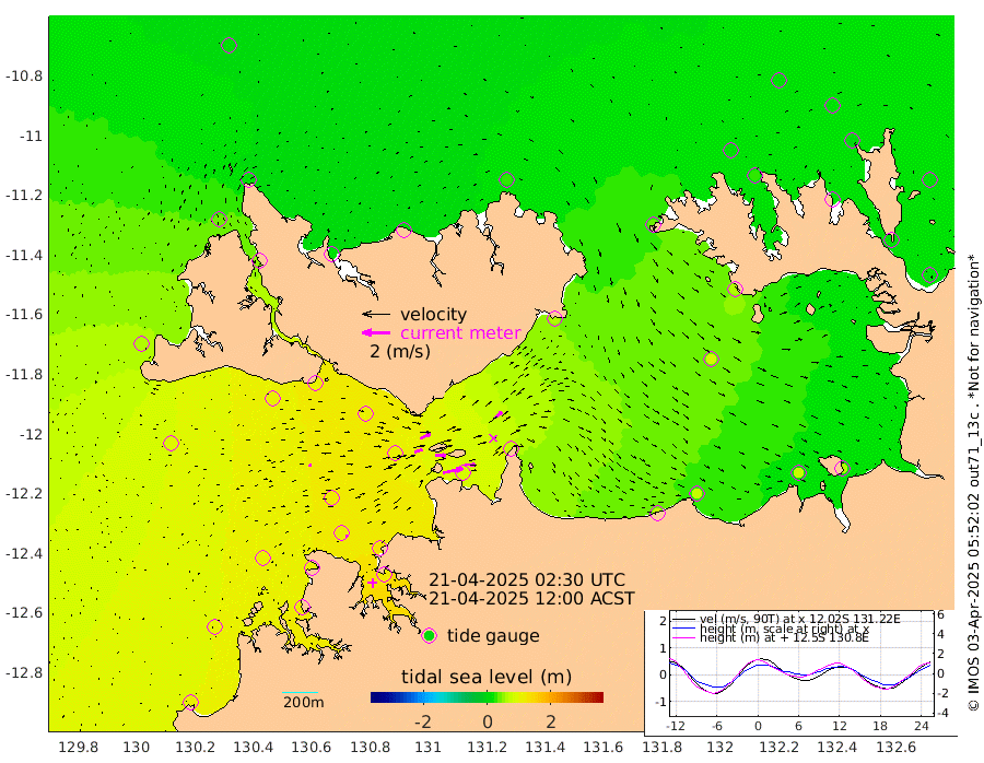 143cm/s 78T +4cm/s rms + 6cm/s 51T. Darwin_C1 52m 80cm/s 93T +4cm/s rms + 7cm/s -161T. Darwin_CW1 22m 58cm/s 72T +4cm/s rms + 8cm/s 61T. Darwin_CW2 34m 70cm/s 49T +3cm/s rms + 9cm/s 98T. Darwin_CW3 22m 80cm/s 90T +5cm/s rms + 7cm/s 88T. Darwin_C3 56m 82cm/s 66T +2cm/s rms + 9cm/s -126T. Darwin_CTbW 22m 19cm/s 79T +1cm/s rms + 1cm/s -47T. DARBGF 30m 13cm/s 98T +4cm/s rms + 3cm/s 80T. NRSDAR 19m 11cm Goodrich Bank 107cm Point Jenny 106cm Native Point 101cm Fish Reef 111cm Tapa Bay 58cm Point Fawcett (Offshore) 117cm Burge Point 102cm Munkunuwa 95cm Beagle A 110cm Parsons Bank 116cm Fenton Patches 111cm Hancox Shoal Area 127cm Nightcliff 115cm Darwin 104cm Charles Point Patches 88cm Glyde Point 77cm Chambers Bay 68cm Point Stuart 73cm Cape Hotham 85cm Christine Reef 75cm West Alligator Head 67cm East Field Island 66cm Two Hills Bay 61cm Camp Point 105cm Medina Inlet South 49cm South Barlow Point 37cm St. Asaph Bay 12cm Cape Van Dieman 13cm Snake Bay 17cm Cache Point 23cm Point Jahleel (Off) 45cm Cape Don 18cm Port Essington 25cm Smith Point - West 19cm NW Peacock Island 14cm North Of Jones Shoal 5cm Peacock Island 11cm Point David 21cm D'urville Point 12cm Copeland Island 15cm One Tree Point