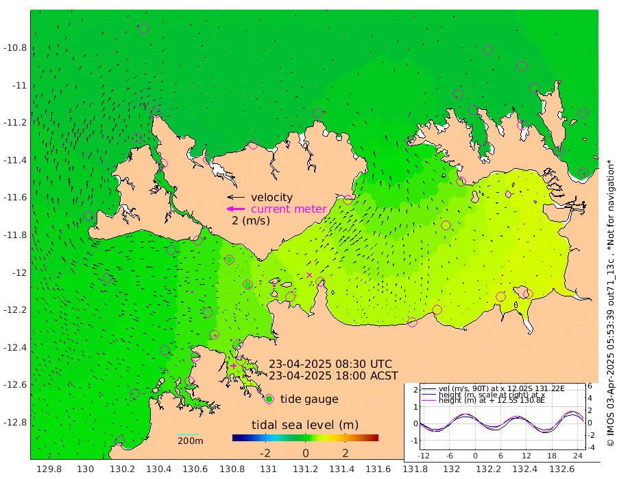 13cm/s -101T +4cm/s rms + 6cm/s 51T. Darwin_C1 52m 16cm/s 93T +4cm/s rms + 7cm/s -161T. Darwin_CW1 22m 9cm/s 71T +4cm/s rms + 8cm/s 61T. Darwin_CW2 34m 12cm/s 31T +3cm/s rms + 9cm/s 98T. Darwin_CW3 22m 28cm/s 91T +5cm/s rms + 7cm/s 88T. Darwin_C3 56m 11cm/s -120T +2cm/s rms + 9cm/s -126T. Darwin_CTbW 22m 24cm/s -80T +1cm/s rms + 1cm/s -47T. DARBGF 30m 30cm/s -55T +4cm/s rms + 3cm/s 80T. NRSDAR 19m -19cm Goodrich Bank 14cm Point Jenny 14cm Native Point 19cm Fish Reef 23cm Tapa Bay -10cm Point Fawcett (Offshore) 35cm Burge Point 12cm Munkunuwa 7cm Beagle A 23cm Parsons Bank 29cm Fenton Patches 32cm Hancox Shoal Area 34cm Nightcliff 48cm Darwin 41cm Charles Point Patches 52cm Glyde Point 73cm Chambers Bay 74cm Point Stuart 48cm Cape Hotham 63cm Christine Reef 83cm West Alligator Head 101cm East Field Island 48cm Two Hills Bay 63cm Camp Point 27cm Medina Inlet South -15cm South Barlow Point -17cm St. Asaph Bay -23cm Cape Van Dieman -22cm Snake Bay -20cm Cache Point -14cm Point Jahleel (Off) 7cm Cape Don -14cm Port Essington -22cm Smith Point - West -21cm NW Peacock Island -17cm North Of Jones Shoal -7cm Peacock Island -18cm Point David -24cm D'urville Point -17cm Copeland Island -12cm One Tree Point