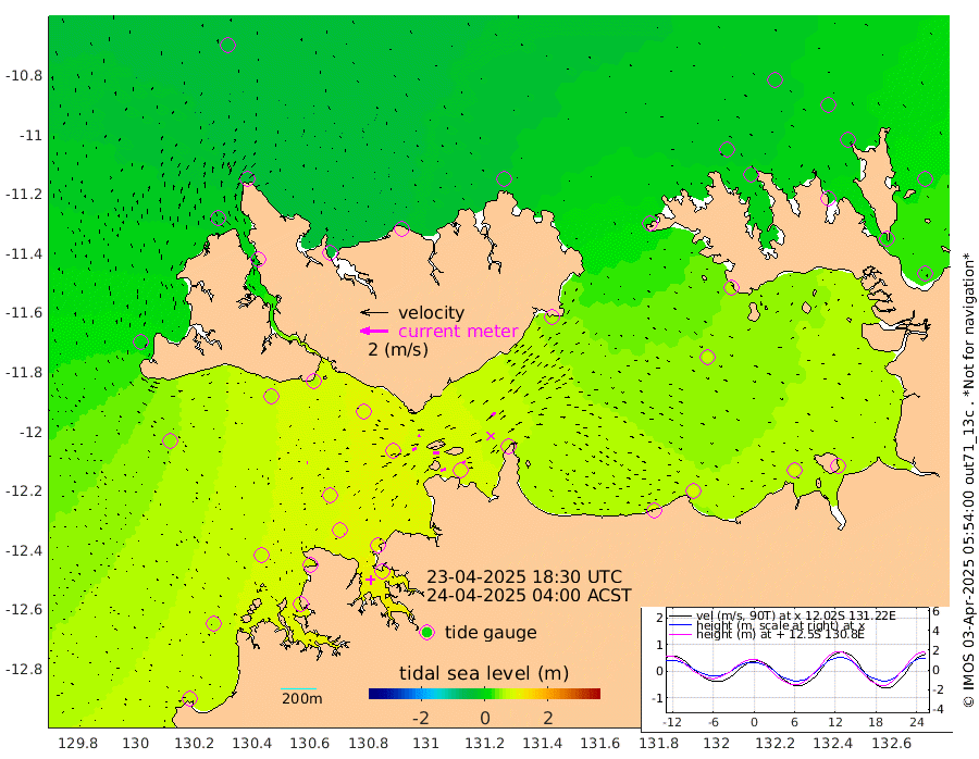 36cm/s 78T +4cm/s rms + 6cm/s 51T. Darwin_C1 52m 23cm/s 91T +4cm/s rms + 7cm/s -161T. Darwin_CW1 22m 29cm/s 72T +4cm/s rms + 8cm/s 61T. Darwin_CW2 34m 32cm/s 36T +3cm/s rms + 9cm/s 98T. Darwin_CW3 22m 42cm/s 89T +5cm/s rms + 7cm/s 88T. Darwin_C3 56m 16cm/s 65T +2cm/s rms + 9cm/s -126T. Darwin_CTbW 22m 5cm/s 64T +1cm/s rms + 1cm/s -47T. DARBGF 30m 4cm/s 86T +4cm/s rms + 3cm/s 80T. NRSDAR 19m -38cm Goodrich Bank 68cm Point Jenny 65cm Native Point 68cm Fish Reef 83cm Tapa Bay 7cm Point Fawcett (Offshore) 84cm Burge Point 62cm Munkunuwa 53cm Beagle A 83cm Parsons Bank 89cm Fenton Patches 96cm Hancox Shoal Area 102cm Nightcliff 95cm Darwin 80cm Charles Point Patches 81cm Glyde Point 90cm Chambers Bay 80cm Point Stuart 77cm Cape Hotham 74cm Christine Reef 87cm West Alligator Head 89cm East Field Island 61cm Two Hills Bay 66cm Camp Point 67cm Medina Inlet South -6cm South Barlow Point -17cm St. Asaph Bay -35cm Cape Van Dieman -35cm Snake Bay -30cm Cache Point -16cm Point Jahleel (Off) 15cm Cape Don -10cm Port Essington -7cm Smith Point - West -7cm NW Peacock Island -22cm North Of Jones Shoal -6cm Peacock Island 19cm Point David -2cm D'urville Point 24cm Copeland Island 10cm One Tree Point