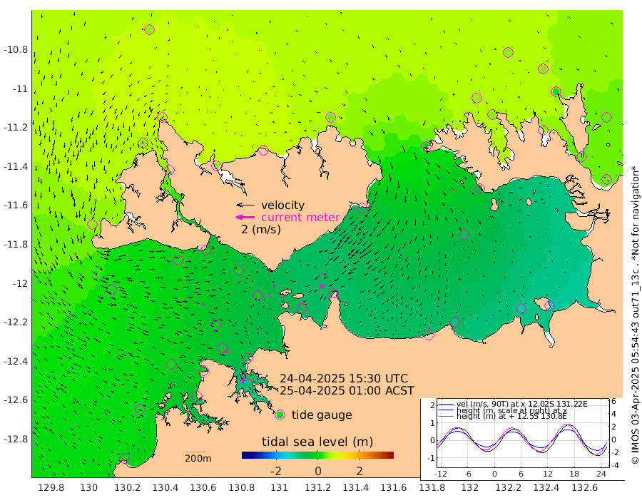 8cm/s 75T +4cm/s rms + 6cm/s 51T. Darwin_C1 52m 17cm/s -91T +4cm/s rms + 7cm/s -161T. Darwin_CW1 22m 4cm/s -113T +4cm/s rms + 8cm/s 61T. Darwin_CW2 34m 23cm/s -147T +3cm/s rms + 9cm/s 98T. Darwin_CW3 22m 27cm/s -89T +5cm/s rms + 7cm/s 88T. Darwin_C3 56m 18cm/s 61T +2cm/s rms + 9cm/s -126T. Darwin_CTbW 22m 40cm/s 98T +1cm/s rms + 1cm/s -47T. DARBGF 30m 44cm/s 127T +4cm/s rms + 3cm/s 80T. NRSDAR 19m 54cm Goodrich Bank 16cm Point Jenny 15cm Native Point 3cm Fish Reef 2cm Tapa Bay 49cm Point Fawcett (Offshore) -18cm Burge Point 6cm Munkunuwa 17cm Beagle A -11cm Parsons Bank -17cm Fenton Patches -21cm Hancox Shoal Area -27cm Nightcliff -35cm Darwin -12cm Charles Point Patches -51cm Glyde Point -82cm Chambers Bay -95cm Point Stuart -56cm Cape Hotham -73cm Christine Reef -112cm West Alligator Head -137cm East Field Island -57cm Two Hills Bay -64cm Camp Point -5cm Medina Inlet South 48cm South Barlow Point 54cm St. Asaph Bay 60cm Cape Van Dieman 54cm Snake Bay 56cm Cache Point 41cm Point Jahleel (Off) 16cm Cape Don 47cm Port Essington 51cm Smith Point - West 50cm NW Peacock Island 49cm North Of Jones Shoal 18cm Peacock Island 41cm Point David 53cm D'urville Point 39cm Copeland Island 38cm One Tree Point