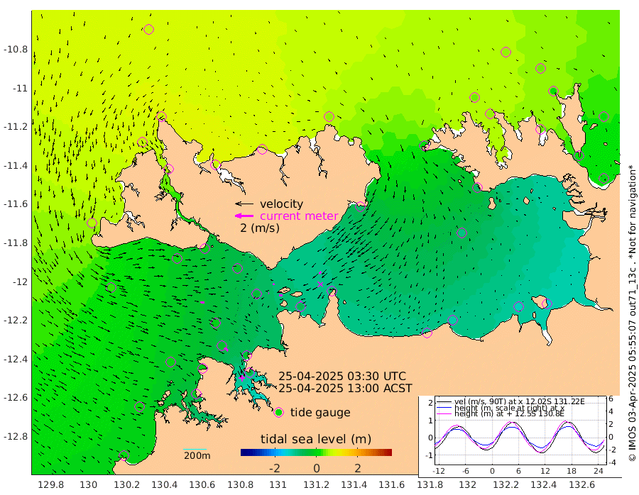 4cm/s 70T +4cm/s rms + 6cm/s 51T. Darwin_C1 52m 19cm/s -97T +4cm/s rms + 7cm/s -161T. Darwin_CW1 22m 4cm/s -97T +4cm/s rms + 8cm/s 61T. Darwin_CW2 34m 31cm/s -145T +3cm/s rms + 9cm/s 98T. Darwin_CW3 22m 33cm/s -89T +5cm/s rms + 7cm/s 88T. Darwin_C3 56m 18cm/s 63T +2cm/s rms + 9cm/s -126T. Darwin_CTbW 22m 45cm/s 98T +1cm/s rms + 1cm/s -47T. DARBGF 30m 50cm/s 128T +4cm/s rms + 3cm/s 80T. NRSDAR 19m 71cm Goodrich Bank 10cm Point Jenny 13cm Native Point 6cm Fish Reef -9cm Tapa Bay 59cm Point Fawcett (Offshore) -17cm Burge Point 8cm Munkunuwa 33cm Beagle A -23cm Parsons Bank -10cm Fenton Patches -42cm Hancox Shoal Area -32cm Nightcliff -45cm Darwin -27cm Charles Point Patches -63cm Glyde Point -111cm Chambers Bay -114cm Point Stuart -68cm Cape Hotham -94cm Christine Reef -130cm West Alligator Head -154cm East Field Island -70cm Two Hills Bay -80cm Camp Point -4cm Medina Inlet South 65cm South Barlow Point 71cm St. Asaph Bay 75cm Cape Van Dieman 75cm Snake Bay 69cm Cache Point 51cm Point Jahleel (Off) 9cm Cape Don 41cm Port Essington 47cm Smith Point - West 43cm NW Peacock Island 51cm North Of Jones Shoal 16cm Peacock Island 14cm Point David 43cm D'urville Point 8cm Copeland Island 17cm One Tree Point