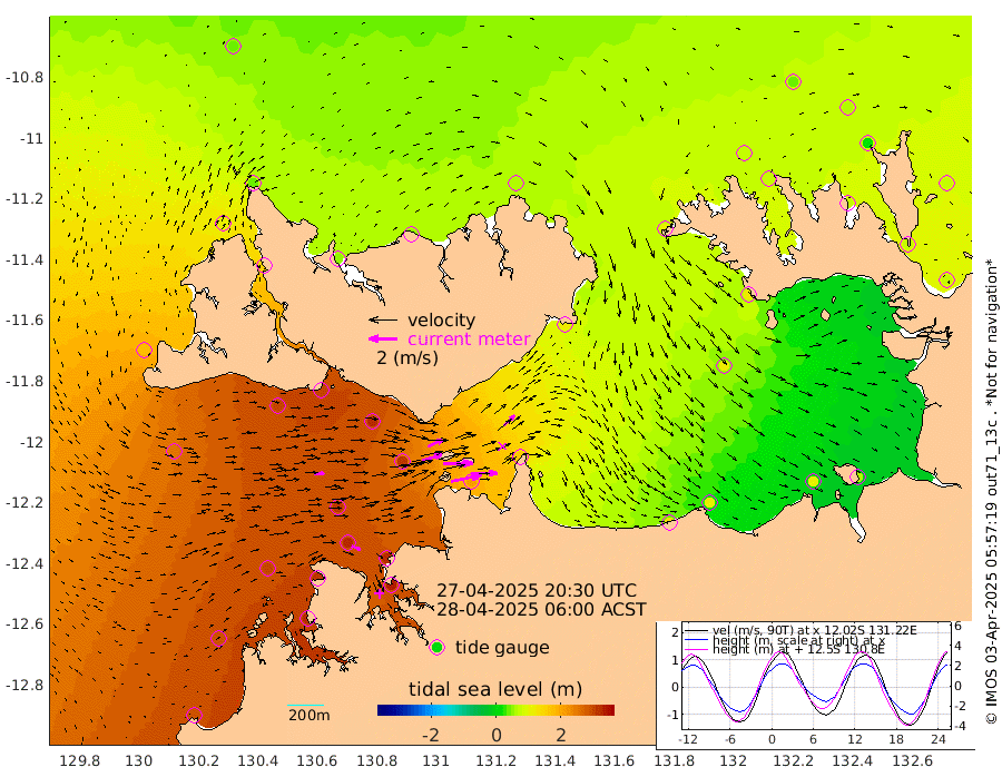 219cm/s 78T +4cm/s rms + 6cm/s 51T. Darwin_C1 52m 171cm/s 91T +4cm/s rms + 7cm/s -161T. Darwin_CW1 22m 142cm/s 74T +4cm/s rms + 8cm/s 61T. Darwin_CW2 34m 105cm/s 46T +3cm/s rms + 9cm/s 98T. Darwin_CW3 22m 210cm/s 89T +5cm/s rms + 7cm/s 88T. Darwin_C3 56m 114cm/s 65T +2cm/s rms + 9cm/s -126T. Darwin_CTbW 22m 71cm/s 85T +1cm/s rms + 1cm/s -47T. DARBGF 30m 66cm/s 113T +4cm/s rms + 3cm/s 80T. NRSDAR 19m 35cm Goodrich Bank 285cm Point Jenny 282cm Native Point 293cm Fish Reef 311cm Tapa Bay 172cm Point Fawcett (Offshore) 325cm Burge Point 301cm Munkunuwa 250cm Beagle A 315cm Parsons Bank 311cm Fenton Patches 304cm Hancox Shoal Area 325cm Nightcliff 334cm Darwin 316cm Charles Point Patches 214cm Glyde Point 128cm Chambers Bay 103cm Point Stuart 168cm Cape Hotham 123cm Christine Reef 103cm West Alligator Head 62cm East Field Island 117cm Two Hills Bay 118cm Camp Point 301cm Medina Inlet South 146cm South Barlow Point 109cm St. Asaph Bay 44cm Cape Van Dieman 47cm Snake Bay 47cm Cache Point 60cm Point Jahleel (Off) 104cm Cape Don 68cm Port Essington 72cm Smith Point - West 61cm NW Peacock Island 45cm North Of Jones Shoal 17cm Peacock Island 71cm Point David 71cm D'urville Point 73cm Copeland Island 69cm One Tree Point