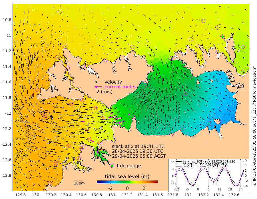 136cm/s 78T +4cm/s rms + 6cm/s 51T. Darwin_C1 52m 92cm/s 87T +4cm/s rms + 7cm/s -161T. Darwin_CW1 22m 98cm/s 74T +4cm/s rms + 8cm/s 61T. Darwin_CW2 34m 23cm/s 84T +3cm/s rms + 9cm/s 98T. Darwin_CW3 22m 107cm/s 87T +5cm/s rms + 7cm/s 88T. Darwin_C3 56m 93cm/s 63T +2cm/s rms + 9cm/s -126T. Darwin_CTbW 22m 107cm/s 91T +1cm/s rms + 1cm/s -47T. DARBGF 30m 108cm/s 121T +4cm/s rms + 3cm/s 80T. NRSDAR 19m 90cm Goodrich Bank 210cm Point Jenny 210cm Native Point 211cm Fish Reef 212cm Tapa Bay 186cm Point Fawcett (Offshore) 205cm Burge Point 232cm Munkunuwa 199cm Beagle A 196cm Parsons Bank 196cm Fenton Patches 167cm Hancox Shoal Area 192cm Nightcliff 186cm Darwin 200cm Charles Point Patches 61cm Glyde Point -62cm Chambers Bay -98cm Point Stuart 15cm Cape Hotham -55cm Christine Reef -121cm West Alligator Head -184cm East Field Island -32cm Two Hills Bay -32cm Camp Point 212cm Medina Inlet South 171cm South Barlow Point 152cm St. Asaph Bay 103cm Cape Van Dieman 101cm Snake Bay 93cm Cache Point 81cm Point Jahleel (Off) 64cm Cape Don 79cm Port Essington 85cm Smith Point - West 71cm NW Peacock Island 76cm North Of Jones Shoal 26cm Peacock Island 45cm Point David 78cm D'urville Point 41cm Copeland Island 49cm One Tree Point