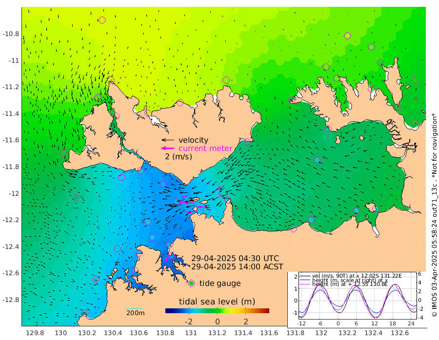 170cm/s -101T +4cm/s rms + 6cm/s 51T. Darwin_C1 52m 142cm/s -91T +4cm/s rms + 7cm/s -161T. Darwin_CW1 22m 92cm/s -107T +4cm/s rms + 8cm/s 61T. Darwin_CW2 34m 87cm/s -134T +3cm/s rms + 9cm/s 98T. Darwin_CW3 22m 153cm/s -91T +5cm/s rms + 7cm/s 88T. Darwin_C3 56m 90cm/s -115T +2cm/s rms + 9cm/s -126T. Darwin_CTbW 22m 9cm/s -150T +1cm/s rms + 1cm/s -47T. DARBGF 30m 12cm/s -160T +4cm/s rms + 3cm/s 80T. NRSDAR 19m 84cm Goodrich Bank -117cm Point Jenny -114cm Native Point -130cm Fish Reef -149cm Tapa Bay -4cm Point Fawcett (Offshore) -169cm Burge Point -153cm Munkunuwa -74cm Beagle A -180cm Parsons Bank -152cm Fenton Patches -178cm Hancox Shoal Area -180cm Nightcliff -195cm Darwin -153cm Charles Point Patches -145cm Glyde Point -131cm Chambers Bay -134cm Point Stuart -128cm Cape Hotham -118cm Christine Reef -151cm West Alligator Head -140cm East Field Island -104cm Two Hills Bay -97cm Camp Point -145cm Medina Inlet South 7cm South Barlow Point 41cm St. Asaph Bay 80cm Cape Van Dieman 74cm Snake Bay 77cm Cache Point 46cm Point Jahleel (Off) -18cm Cape Don 35cm Port Essington 35cm Smith Point - West 38cm NW Peacock Island 61cm North Of Jones Shoal 19cm Peacock Island 1cm Point David 30cm D'urville Point -5cm Copeland Island 9cm One Tree Point
