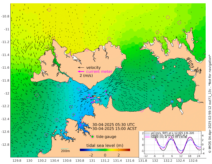 150cm/s -101T +4cm/s rms + 6cm/s 51T. Darwin_C1 52m 121cm/s -91T +4cm/s rms + 7cm/s -161T. Darwin_CW1 22m 68cm/s -107T +4cm/s rms + 8cm/s 61T. Darwin_CW2 34m 83cm/s -135T +3cm/s rms + 9cm/s 98T. Darwin_CW3 22m 121cm/s -91T +5cm/s rms + 7cm/s 88T. Darwin_C3 56m 77cm/s -116T +2cm/s rms + 9cm/s -126T. Darwin_CTbW 22m 16cm/s 118T +1cm/s rms + 1cm/s -47T. DARBGF 30m 22cm/s 152T +4cm/s rms + 3cm/s 80T. NRSDAR 19m 101cm Goodrich Bank -67cm Point Jenny -64cm Native Point -80cm Fish Reef -95cm Tapa Bay 33cm Point Fawcett (Offshore) -113cm Burge Point -99cm Munkunuwa -29cm Beagle A -128cm Parsons Bank -100cm Fenton Patches -130cm Hancox Shoal Area -127cm Nightcliff -139cm Darwin -97cm Charles Point Patches -116cm Glyde Point -128cm Chambers Bay -139cm Point Stuart -111cm Cape Hotham -114cm Christine Reef -159cm West Alligator Head -158cm East Field Island -99cm Two Hills Bay -86cm Camp Point -92cm Medina Inlet South 43cm South Barlow Point 70cm St. Asaph Bay 99cm Cape Van Dieman 94cm Snake Bay 94cm Cache Point 62cm Point Jahleel (Off) 1cm Cape Don 53cm Port Essington 52cm Smith Point - West 54cm NW Peacock Island 77cm North Of Jones Shoal 24cm Peacock Island 18cm Point David 48cm D'urville Point 11cm Copeland Island 25cm One Tree Point