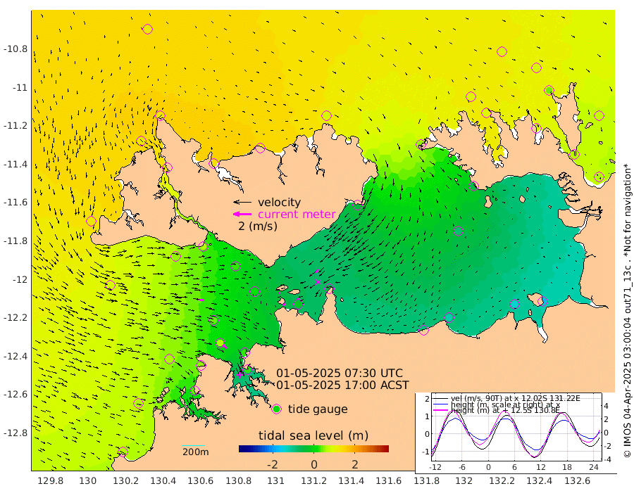 26cm/s -101T +4cm/s rms + 6cm/s 51T. Darwin_C1 52m 25cm/s -89T +4cm/s rms + 7cm/s -161T. Darwin_CW1 22m 3cm/s 98T +4cm/s rms + 8cm/s 61T. Darwin_CW2 34m 49cm/s -139T +3cm/s rms + 9cm/s 98T. Darwin_CW3 22m 21cm/s -88T +5cm/s rms + 7cm/s 88T. Darwin_C3 56m 1cm/s 20T +2cm/s rms + 9cm/s -126T. Darwin_CTbW 22m 57cm/s 96T +1cm/s rms + 1cm/s -47T. DARBGF 30m 59cm/s 128T +4cm/s rms + 3cm/s 80T. NRSDAR 19m 118cm Goodrich Bank 63cm Point Jenny 67cm Native Point 61cm Fish Reef 53cm Tapa Bay 113cm Point Fawcett (Offshore) 43cm Burge Point 55cm Munkunuwa 83cm Beagle A 33cm Parsons Bank 44cm Fenton Patches 16cm Hancox Shoal Area 25cm Nightcliff 30cm Darwin 61cm Charles Point Patches -22cm Glyde Point -100cm Chambers Bay -120cm Point Stuart -45cm Cape Hotham -90cm Christine Reef -146cm West Alligator Head -174cm East Field Island -62cm Two Hills Bay -48cm Camp Point 60cm Medina Inlet South 121cm South Barlow Point 122cm St. Asaph Bay 122cm Cape Van Dieman 125cm Snake Bay 114cm Cache Point 90cm Point Jahleel (Off) 48cm Cape Don 92cm Port Essington 90cm Smith Point - West 89cm NW Peacock Island 101cm North Of Jones Shoal 35cm Peacock Island 66cm Point David 89cm D'urville Point 59cm Copeland Island 71cm One Tree Point