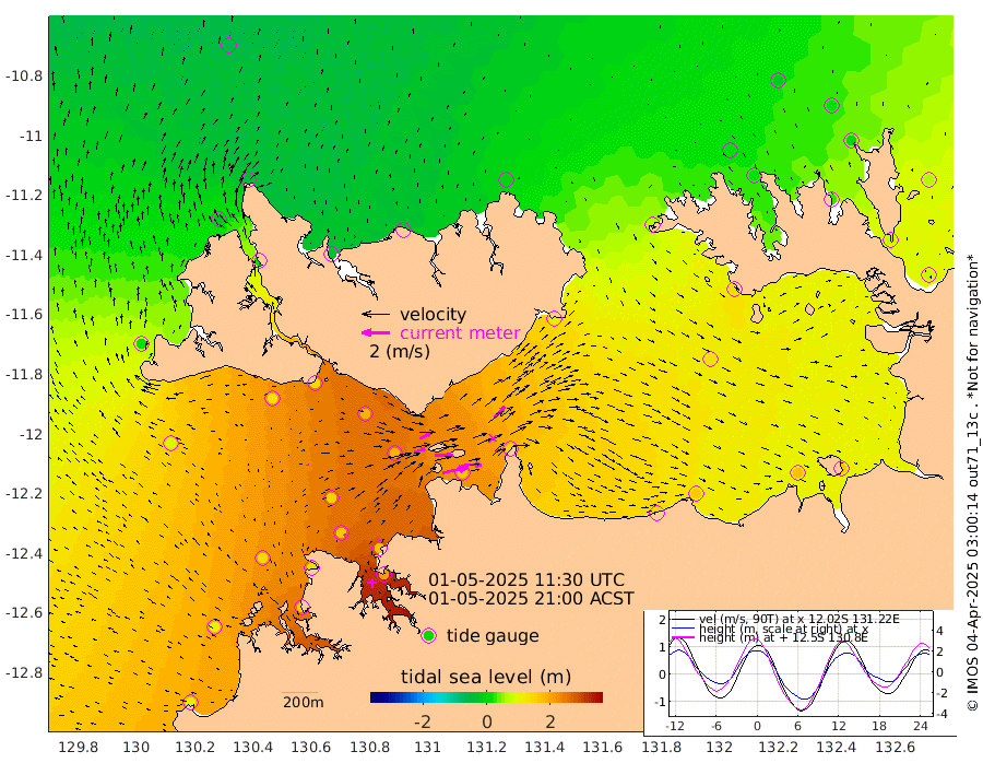 186cm/s 78T +4cm/s rms + 6cm/s 51T. Darwin_C1 52m 124cm/s 92T +4cm/s rms + 7cm/s -161T. Darwin_CW1 22m 81cm/s 73T +4cm/s rms + 8cm/s 61T. Darwin_CW2 34m 112cm/s 43T +3cm/s rms + 9cm/s 98T. Darwin_CW3 22m 134cm/s 90T +5cm/s rms + 7cm/s 88T. Darwin_C3 56m 91cm/s 65T +2cm/s rms + 9cm/s -126T. Darwin_CTbW 22m 7cm/s -23T +1cm/s rms + 1cm/s -47T. DARBGF 30m 14cm/s -16T +4cm/s rms + 3cm/s 80T. NRSDAR 19m -50cm Goodrich Bank 114cm Point Jenny 112cm Native Point 136cm Fish Reef 145cm Tapa Bay 19cm Point Fawcett (Offshore) 166cm Burge Point 135cm Munkunuwa 81cm Beagle A 187cm Parsons Bank 153cm Fenton Patches 181cm Hancox Shoal Area 171cm Nightcliff 205cm Darwin 169cm Charles Point Patches 166cm Glyde Point 147cm Chambers Bay 163cm Point Stuart 153cm Cape Hotham 131cm Christine Reef 174cm West Alligator Head 168cm East Field Island 136cm Two Hills Bay 124cm Camp Point 146cm Medina Inlet South 15cm South Barlow Point -24cm St. Asaph Bay -45cm Cape Van Dieman -32cm Snake Bay -39cm Cache Point -10cm Point Jahleel (Off) 59cm Cape Don 18cm Port Essington 16cm Smith Point - West 20cm NW Peacock Island -13cm North Of Jones Shoal 0cm Peacock Island 72cm Point David 30cm D'urville Point 78cm Copeland Island 62cm One Tree Point