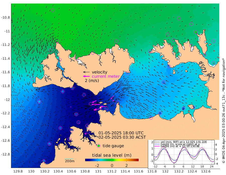 253cm/s -101T +4cm/s rms + 6cm/s 51T. Darwin_C1 52m 193cm/s -91T +4cm/s rms + 7cm/s -161T. Darwin_CW1 22m 106cm/s -105T +4cm/s rms + 8cm/s 61T. Darwin_CW2 34m 130cm/s -136T +3cm/s rms + 9cm/s 98T. Darwin_CW3 22m 182cm/s -90T +5cm/s rms + 7cm/s 88T. Darwin_C3 56m 143cm/s -115T +2cm/s rms + 9cm/s -126T. Darwin_CTbW 22m 14cm/s -131T +1cm/s rms + 1cm/s -47T. DARBGF 30m 13cm/s -172T +4cm/s rms + 3cm/s 80T. NRSDAR 19m -14cm Goodrich Bank -225cm Point Jenny -221cm Native Point -244cm Fish Reef -257cm Tapa Bay -117cm Point Fawcett (Offshore) -283cm Burge Point -229cm Munkunuwa -188cm Beagle A -282cm Parsons Bank -263cm Fenton Patches -282cm Hancox Shoal Area -284cm Nightcliff -319cm Darwin -286cm Charles Point Patches -258cm Glyde Point -232cm Chambers Bay -242cm Point Stuart -236cm Cape Hotham -220cm Christine Reef -258cm West Alligator Head -251cm East Field Island -214cm Two Hills Bay -204cm Camp Point -256cm Medina Inlet South -94cm South Barlow Point -57cm St. Asaph Bay -17cm Cape Van Dieman -29cm Snake Bay -30cm Cache Point -55cm Point Jahleel (Off) -129cm Cape Don -73cm Port Essington -70cm Smith Point - West -69cm NW Peacock Island -46cm North Of Jones Shoal -19cm Peacock Island -104cm Point David -76cm D'urville Point -106cm Copeland Island -103cm One Tree Point