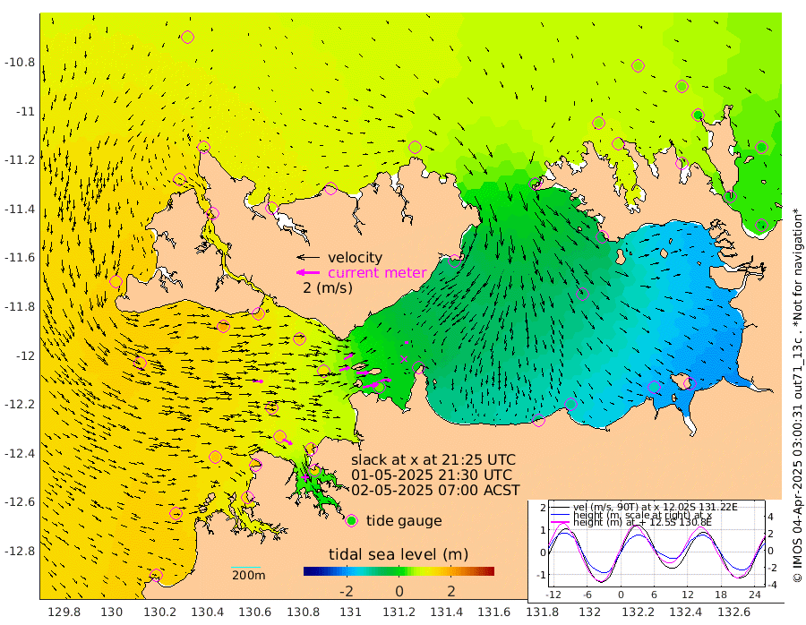 136cm/s 78T +4cm/s rms + 6cm/s 51T. Darwin_C1 52m 90cm/s 88T +4cm/s rms + 7cm/s -161T. Darwin_CW1 22m 89cm/s 74T +4cm/s rms + 8cm/s 61T. Darwin_CW2 34m 26cm/s 81T +3cm/s rms + 9cm/s 98T. Darwin_CW3 22m 104cm/s 87T +5cm/s rms + 7cm/s 88T. Darwin_C3 56m 86cm/s 63T +2cm/s rms + 9cm/s -126T. Darwin_CTbW 22m 90cm/s 90T +1cm/s rms + 1cm/s -47T. DARBGF 30m 90cm/s 119T +4cm/s rms + 3cm/s 80T. NRSDAR 19m 71cm Goodrich Bank 157cm Point Jenny 159cm Native Point 164cm Fish Reef 164cm Tapa Bay 144cm Point Fawcett (Offshore) 155cm Burge Point 193cm Munkunuwa 151cm Beagle A 154cm Parsons Bank 149cm Fenton Patches 127cm Hancox Shoal Area 150cm Nightcliff 148cm Darwin 155cm Charles Point Patches 35cm Glyde Point -80cm Chambers Bay -106cm Point Stuart -6cm Cape Hotham -71cm Christine Reef -124cm West Alligator Head -181cm East Field Island -46cm Two Hills Bay -49cm Camp Point 171cm Medina Inlet South 140cm South Barlow Point 122cm St. Asaph Bay 80cm Cape Van Dieman 82cm Snake Bay 68cm Cache Point 59cm Point Jahleel (Off) 36cm Cape Don 52cm Port Essington 58cm Smith Point - West 44cm NW Peacock Island 52cm North Of Jones Shoal 17cm Peacock Island 15cm Point David 50cm D'urville Point 10cm Copeland Island 20cm One Tree Point