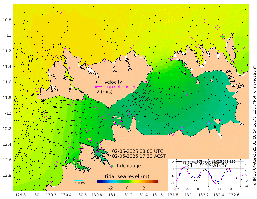 36cm/s -101T +4cm/s rms + 6cm/s 51T. Darwin_C1 52m 23cm/s -90T +4cm/s rms + 7cm/s -161T. Darwin_CW1 22m 2cm/s -144T +4cm/s rms + 8cm/s 61T. Darwin_CW2 34m 47cm/s -138T +3cm/s rms + 9cm/s 98T. Darwin_CW3 22m 18cm/s -88T +5cm/s rms + 7cm/s 88T. Darwin_C3 56m 10cm/s -114T +2cm/s rms + 9cm/s -126T. Darwin_CTbW 22m 44cm/s 96T +1cm/s rms + 1cm/s -47T. DARBGF 30m 45cm/s 129T +4cm/s rms + 3cm/s 80T. NRSDAR 19m 105cm Goodrich Bank 46cm Point Jenny 50cm Native Point 41cm Fish Reef 38cm Tapa Bay 95cm Point Fawcett (Offshore) 28cm Burge Point 39cm Munkunuwa 62cm Beagle A 19cm Parsons Bank 27cm Fenton Patches 7cm Hancox Shoal Area 14cm Nightcliff 18cm Darwin 48cm Charles Point Patches -25cm Glyde Point -91cm Chambers Bay -109cm Point Stuart -45cm Cape Hotham -80cm Christine Reef -132cm West Alligator Head -155cm East Field Island -59cm Two Hills Bay -42cm Camp Point 44cm Medina Inlet South 103cm South Barlow Point 106cm St. Asaph Bay 109cm Cape Van Dieman 112cm Snake Bay 100cm Cache Point 78cm Point Jahleel (Off) 40cm Cape Don 80cm Port Essington 77cm Smith Point - West 77cm NW Peacock Island 90cm North Of Jones Shoal 31cm Peacock Island 57cm Point David 76cm D'urville Point 50cm Copeland Island 62cm One Tree Point