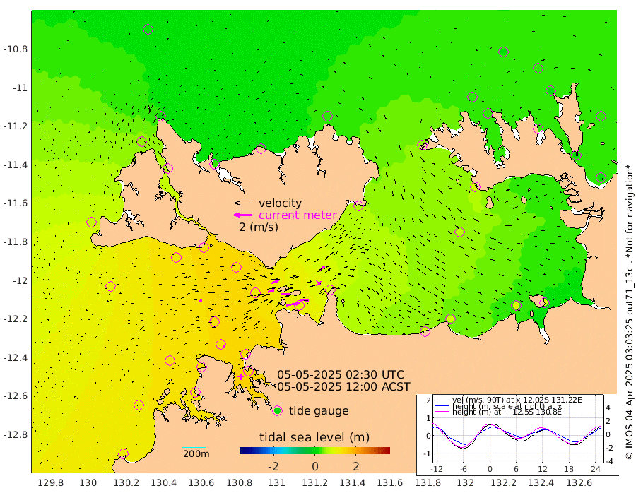 152cm/s 78T +4cm/s rms + 6cm/s 51T. Darwin_C1 52m 92cm/s 93T +4cm/s rms + 7cm/s -161T. Darwin_CW1 22m 71cm/s 72T +4cm/s rms + 8cm/s 61T. Darwin_CW2 34m 72cm/s 50T +3cm/s rms + 9cm/s 98T. Darwin_CW3 22m 101cm/s 89T +5cm/s rms + 7cm/s 88T. Darwin_C3 56m 84cm/s 65T +2cm/s rms + 9cm/s -126T. Darwin_CTbW 22m 25cm/s 81T +1cm/s rms + 1cm/s -47T. DARBGF 30m 17cm/s 104T +4cm/s rms + 3cm/s 80T. NRSDAR 19m 17cm Goodrich Bank 118cm Point Jenny 117cm Native Point 128cm Fish Reef 127cm Tapa Bay 77cm Point Fawcett (Offshore) 130cm Burge Point 122cm Munkunuwa 107cm Beagle A 126cm Parsons Bank 129cm Fenton Patches 121cm Hancox Shoal Area 132cm Nightcliff 137cm Darwin 125cm Charles Point Patches 103cm Glyde Point 83cm Chambers Bay 84cm Point Stuart 89cm Cape Hotham 78cm Christine Reef 92cm West Alligator Head 80cm East Field Island 81cm Two Hills Bay 66cm Camp Point 127cm Medina Inlet South 60cm South Barlow Point 46cm St. Asaph Bay 19cm Cape Van Dieman 23cm Snake Bay 24cm Cache Point 31cm Point Jahleel (Off) 53cm Cape Don 27cm Port Essington 31cm Smith Point - West 24cm NW Peacock Island 19cm North Of Jones Shoal 7cm Peacock Island 18cm Point David 27cm D'urville Point 17cm Copeland Island 23cm One Tree Point