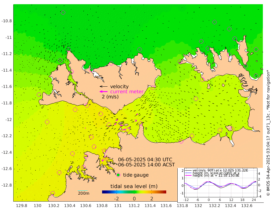 96cm/s 78T +4cm/s rms + 6cm/s 51T. Darwin_C1 52m 64cm/s 92T +4cm/s rms + 7cm/s -161T. Darwin_CW1 22m 52cm/s 72T +4cm/s rms + 8cm/s 61T. Darwin_CW2 34m 50cm/s 49T +3cm/s rms + 9cm/s 98T. Darwin_CW3 22m 75cm/s 90T +5cm/s rms + 7cm/s 88T. Darwin_C3 56m 56cm/s 65T +2cm/s rms + 9cm/s -126T. Darwin_CTbW 22m 15cm/s 77T +1cm/s rms + 1cm/s -47T. DARBGF 30m 9cm/s 94T +4cm/s rms + 3cm/s 80T. NRSDAR 19m 8cm Goodrich Bank 108cm Point Jenny 107cm Native Point 117cm Fish Reef 115cm Tapa Bay 63cm Point Fawcett (Offshore) 124cm Burge Point 104cm Munkunuwa 100cm Beagle A 111cm Parsons Bank 123cm Fenton Patches 109cm Hancox Shoal Area 119cm Nightcliff 126cm Darwin 114cm Charles Point Patches 106cm Glyde Point 98cm Chambers Bay 100cm Point Stuart 93cm Cape Hotham 88cm Christine Reef 109cm West Alligator Head 107cm East Field Island 86cm Two Hills Bay 79cm Camp Point 112cm Medina Inlet South 44cm South Barlow Point 33cm St. Asaph Bay 10cm Cape Van Dieman 11cm Snake Bay 16cm Cache Point 22cm Point Jahleel (Off) 47cm Cape Don 19cm Port Essington 19cm Smith Point - West 14cm NW Peacock Island 7cm North Of Jones Shoal 3cm Peacock Island 13cm Point David 15cm D'urville Point 13cm Copeland Island 16cm One Tree Point