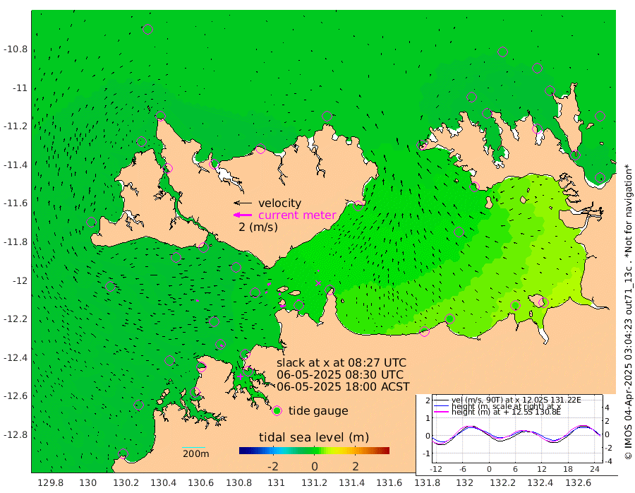 63cm/s -101T +4cm/s rms + 6cm/s 51T. Darwin_C1 52m 24cm/s -90T +4cm/s rms + 7cm/s -161T. Darwin_CW1 22m 22cm/s -106T +4cm/s rms + 8cm/s 61T. Darwin_CW2 34m 16cm/s -126T +3cm/s rms + 9cm/s 98T. Darwin_CW3 22m 20cm/s -93T +5cm/s rms + 7cm/s 88T. Darwin_C3 56m 39cm/s -115T +2cm/s rms + 9cm/s -126T. Darwin_CTbW 22m 30cm/s -86T +1cm/s rms + 1cm/s -47T. DARBGF 30m 30cm/s -60T +4cm/s rms + 3cm/s 80T. NRSDAR 19m -7cm Goodrich Bank -27cm Point Jenny -24cm Native Point -33cm Fish Reef -24cm Tapa Bay -29cm Point Fawcett (Offshore) -16cm Burge Point -28cm Munkunuwa -28cm Beagle A -27cm Parsons Bank -23cm Fenton Patches -22cm Hancox Shoal Area -28cm Nightcliff -18cm Darwin -18cm Charles Point Patches -1cm Glyde Point 13cm Chambers Bay 20cm Point Stuart 0cm Cape Hotham 15cm Christine Reef 24cm West Alligator Head 39cm East Field Island 3cm Two Hills Bay 21cm Camp Point -26cm Medina Inlet South -26cm South Barlow Point -20cm St. Asaph Bay -10cm Cape Van Dieman -12cm Snake Bay -13cm Cache Point -13cm Point Jahleel (Off) -14cm Cape Don -18cm Port Essington -25cm Smith Point - West -22cm NW Peacock Island -21cm North Of Jones Shoal -8cm Peacock Island -17cm Point David -26cm D'urville Point -20cm Copeland Island -20cm One Tree Point