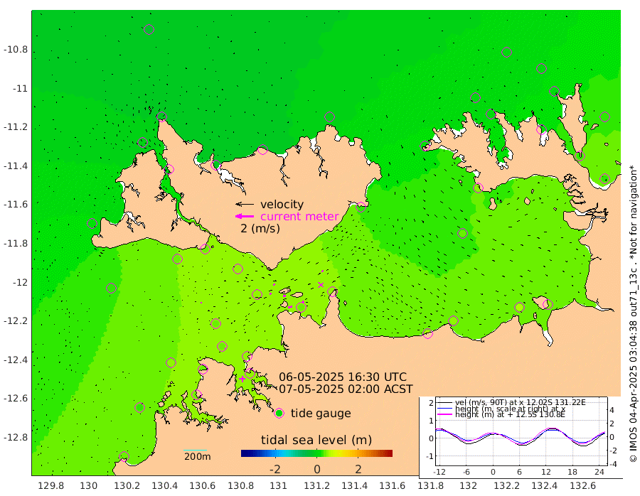 43cm/s 80T +4cm/s rms + 6cm/s 51T. Darwin_C1 52m 19cm/s 85T +4cm/s rms + 7cm/s -161T. Darwin_CW1 22m 20cm/s 73T +4cm/s rms + 8cm/s 61T. Darwin_CW2 34m 23cm/s 46T +3cm/s rms + 9cm/s 98T. Darwin_CW3 22m 26cm/s 89T +5cm/s rms + 7cm/s 88T. Darwin_C3 56m 23cm/s 64T +2cm/s rms + 9cm/s -126T. Darwin_CTbW 22m 11cm/s 89T +1cm/s rms + 1cm/s -47T. DARBGF 30m 7cm/s 111T +4cm/s rms + 3cm/s 80T. NRSDAR 19m -25cm Goodrich Bank 38cm Point Jenny 33cm Native Point 47cm Fish Reef 42cm Tapa Bay 15cm Point Fawcett (Offshore) 42cm Burge Point 35cm Munkunuwa 25cm Beagle A 49cm Parsons Bank 39cm Fenton Patches 50cm Hancox Shoal Area 50cm Nightcliff 50cm Darwin 42cm Charles Point Patches 45cm Glyde Point 56cm Chambers Bay 56cm Point Stuart 51cm Cape Hotham 38cm Christine Reef 59cm West Alligator Head 54cm East Field Island 47cm Two Hills Bay 32cm Camp Point 39cm Medina Inlet South -2cm South Barlow Point -9cm St. Asaph Bay -21cm Cape Van Dieman -20cm Snake Bay -13cm Cache Point -5cm Point Jahleel (Off) 21cm Cape Don 7cm Port Essington 8cm Smith Point - West 8cm NW Peacock Island 2cm North Of Jones Shoal 3cm Peacock Island 29cm Point David 13cm D'urville Point 33cm Copeland Island 27cm One Tree Point