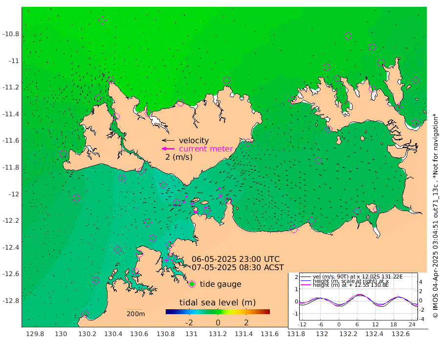69cm/s -102T +4cm/s rms + 6cm/s 51T. Darwin_C1 52m 46cm/s -89T +4cm/s rms + 7cm/s -161T. Darwin_CW1 22m 37cm/s -106T +4cm/s rms + 8cm/s 61T. Darwin_CW2 34m 42cm/s -134T +3cm/s rms + 9cm/s 98T. Darwin_CW3 22m 59cm/s -90T +5cm/s rms + 7cm/s 88T. Darwin_C3 56m 38cm/s -115T +2cm/s rms + 9cm/s -126T. Darwin_CTbW 22m 12cm/s -99T +1cm/s rms + 1cm/s -47T. DARBGF 30m 7cm/s -80T +4cm/s rms + 3cm/s 80T. NRSDAR 19m 8cm Goodrich Bank -76cm Point Jenny -73cm Native Point -83cm Fish Reef -86cm Tapa Bay -41cm Point Fawcett (Offshore) -87cm Burge Point -75cm Munkunuwa -56cm Beagle A -87cm Parsons Bank -78cm Fenton Patches -86cm Hancox Shoal Area -87cm Nightcliff -98cm Darwin -89cm Charles Point Patches -82cm Glyde Point -81cm Chambers Bay -82cm Point Stuart -76cm Cape Hotham -61cm Christine Reef -87cm West Alligator Head -81cm East Field Island -69cm Two Hills Bay -63cm Camp Point -82cm Medina Inlet South -21cm South Barlow Point -11cm St. Asaph Bay 4cm Cape Van Dieman 2cm Snake Bay -1cm Cache Point -9cm Point Jahleel (Off) -39cm Cape Don -18cm Port Essington -13cm Smith Point - West -13cm NW Peacock Island -6cm North Of Jones Shoal -4cm Peacock Island -35cm Point David -17cm D'urville Point -36cm Copeland Island -32cm One Tree Point