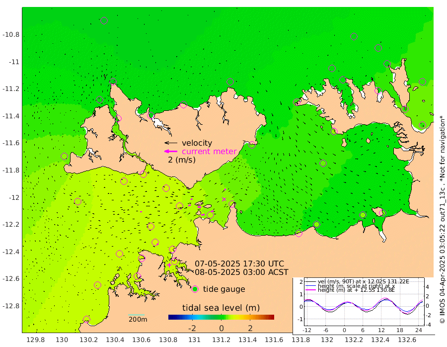 52cm/s 79T +4cm/s rms + 6cm/s 51T. Darwin_C1 52m 35cm/s 89T +4cm/s rms + 7cm/s -161T. Darwin_CW1 22m 38cm/s 74T +4cm/s rms + 8cm/s 61T. Darwin_CW2 34m 25cm/s 45T +3cm/s rms + 9cm/s 98T. Darwin_CW3 22m 54cm/s 88T +5cm/s rms + 7cm/s 88T. Darwin_C3 56m 27cm/s 65T +2cm/s rms + 9cm/s -126T. Darwin_CTbW 22m 26cm/s 89T +1cm/s rms + 1cm/s -47T. DARBGF 30m 23cm/s 117T +4cm/s rms + 3cm/s 80T. NRSDAR 19m -12cm Goodrich Bank 77cm Point Jenny 72cm Native Point 87cm Fish Reef 84cm Tapa Bay 47cm Point Fawcett (Offshore) 84cm Burge Point 78cm Munkunuwa 62cm Beagle A 86cm Parsons Bank 80cm Fenton Patches 85cm Hancox Shoal Area 91cm Nightcliff 90cm Darwin 83cm Charles Point Patches 64cm Glyde Point 57cm Chambers Bay 51cm Point Stuart 62cm Cape Hotham 38cm Christine Reef 53cm West Alligator Head 40cm East Field Island 49cm Two Hills Bay 37cm Camp Point 80cm Medina Inlet South 25cm South Barlow Point 16cm St. Asaph Bay -6cm Cape Van Dieman -6cm Snake Bay 0cm Cache Point 7cm Point Jahleel (Off) 30cm Cape Don 15cm Port Essington 16cm Smith Point - West 13cm NW Peacock Island 10cm North Of Jones Shoal 5cm Peacock Island 29cm Point David 18cm D'urville Point 33cm Copeland Island 28cm One Tree Point