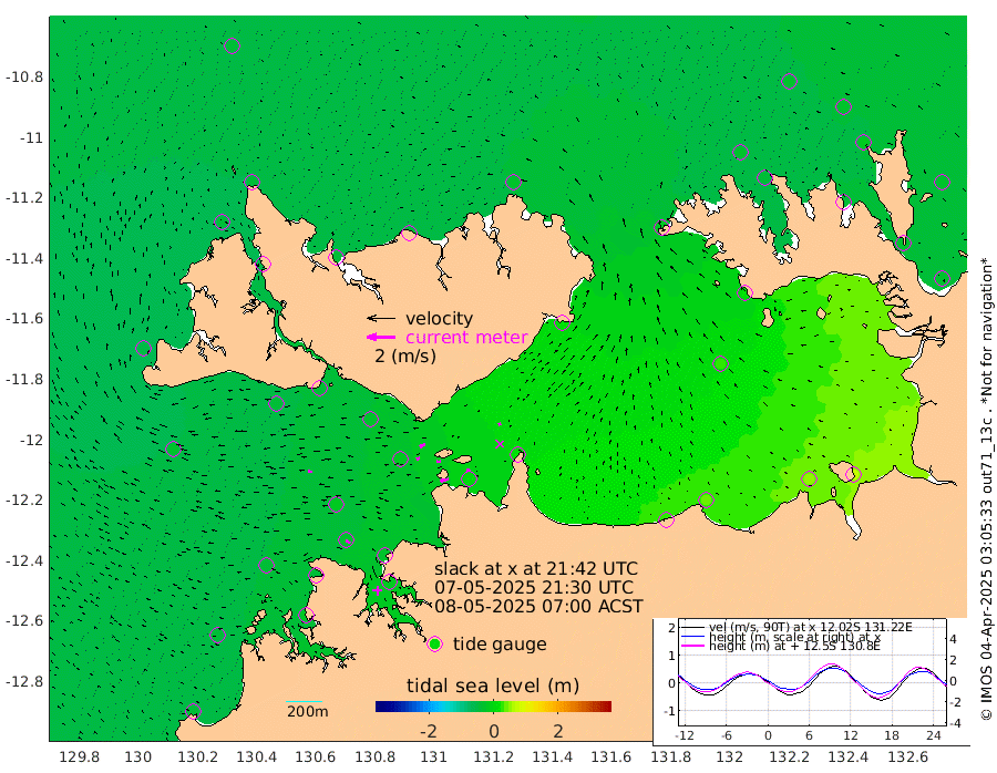 60cm/s -102T +4cm/s rms + 6cm/s 51T. Darwin_C1 52m 28cm/s -87T +4cm/s rms + 7cm/s -161T. Darwin_CW1 22m 26cm/s -106T +4cm/s rms + 8cm/s 61T. Darwin_CW2 34m 17cm/s -115T +3cm/s rms + 9cm/s 98T. Darwin_CW3 22m 29cm/s -93T +5cm/s rms + 7cm/s 88T. Darwin_C3 56m 41cm/s -115T +2cm/s rms + 9cm/s -126T. Darwin_CTbW 22m 32cm/s -86T +1cm/s rms + 1cm/s -47T. DARBGF 30m 32cm/s -58T +4cm/s rms + 3cm/s 80T. NRSDAR 19m -37cm Goodrich Bank -38cm Point Jenny -40cm Native Point -34cm Fish Reef -38cm Tapa Bay -50cm Point Fawcett (Offshore) -19cm Burge Point -38cm Munkunuwa -33cm Beagle A -26cm Parsons Bank -20cm Fenton Patches -20cm Hancox Shoal Area -24cm Nightcliff -22cm Darwin -31cm Charles Point Patches 2cm Glyde Point 31cm Chambers Bay 42cm Point Stuart 15cm Cape Hotham 34cm Christine Reef 51cm West Alligator Head 70cm East Field Island 18cm Two Hills Bay 20cm Camp Point -36cm Medina Inlet South -48cm South Barlow Point -45cm St. Asaph Bay -41cm Cape Van Dieman -44cm Snake Bay -37cm Cache Point -30cm Point Jahleel (Off) -22cm Cape Don -33cm Port Essington -34cm Smith Point - West -32cm NW Peacock Island -34cm North Of Jones Shoal -12cm Peacock Island -29cm Point David -34cm D'urville Point -25cm Copeland Island -29cm One Tree Point