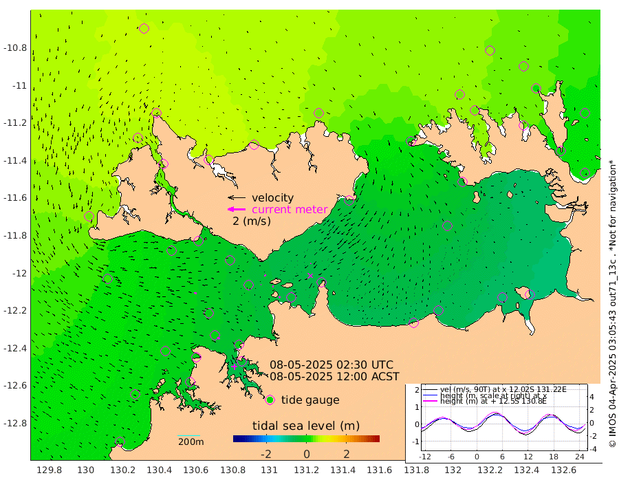 18cm/s 75T +4cm/s rms + 6cm/s 51T. Darwin_C1 52m 4cm/s -109T +4cm/s rms + 7cm/s -161T. Darwin_CW1 22m 2cm/s 69T +4cm/s rms + 8cm/s 61T. Darwin_CW2 34m 10cm/s -158T +3cm/s rms + 9cm/s 98T. Darwin_CW3 22m 12cm/s -89T +5cm/s rms + 7cm/s 88T. Darwin_C3 56m 23cm/s 64T +2cm/s rms + 9cm/s -126T. Darwin_CTbW 22m 30cm/s 97T +1cm/s rms + 1cm/s -47T. DARBGF 30m 32cm/s 125T +4cm/s rms + 3cm/s 80T. NRSDAR 19m 59cm Goodrich Bank 12cm Point Jenny 14cm Native Point 5cm Fish Reef -2cm Tapa Bay 45cm Point Fawcett (Offshore) -12cm Burge Point 2cm Munkunuwa 30cm Beagle A -14cm Parsons Bank 0cm Fenton Patches -21cm Hancox Shoal Area -9cm Nightcliff -24cm Darwin -9cm Charles Point Patches -38cm Glyde Point -66cm Chambers Bay -78cm Point Stuart -46cm Cape Hotham -51cm Christine Reef -89cm West Alligator Head -102cm East Field Island -44cm Two Hills Bay -47cm Camp Point 2cm Medina Inlet South 54cm South Barlow Point 57cm St. Asaph Bay 59cm Cape Van Dieman 60cm Snake Bay 56cm Cache Point 43cm Point Jahleel (Off) 14cm Cape Don 36cm Port Essington 43cm Smith Point - West 39cm NW Peacock Island 47cm North Of Jones Shoal 15cm Peacock Island 11cm Point David 39cm D'urville Point 7cm Copeland Island 17cm One Tree Point